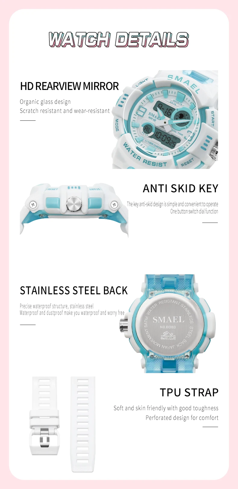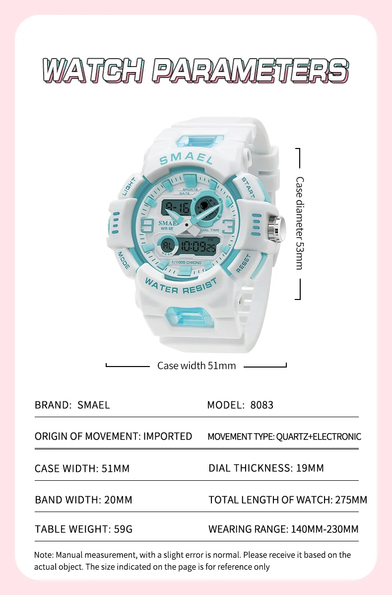 • Digital Movement :Experience the convenience of digital movement with this SMAEL wristwatch. It’s easy to read and provides accurate time information.