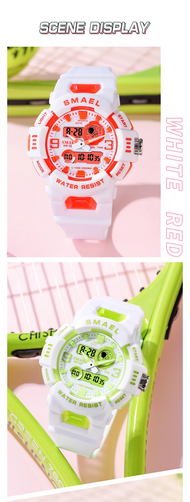 SMAEL Midsize Digital Watch Women Youth Vitality Multifunctional Sport Electronic and Quartz Wristwatch