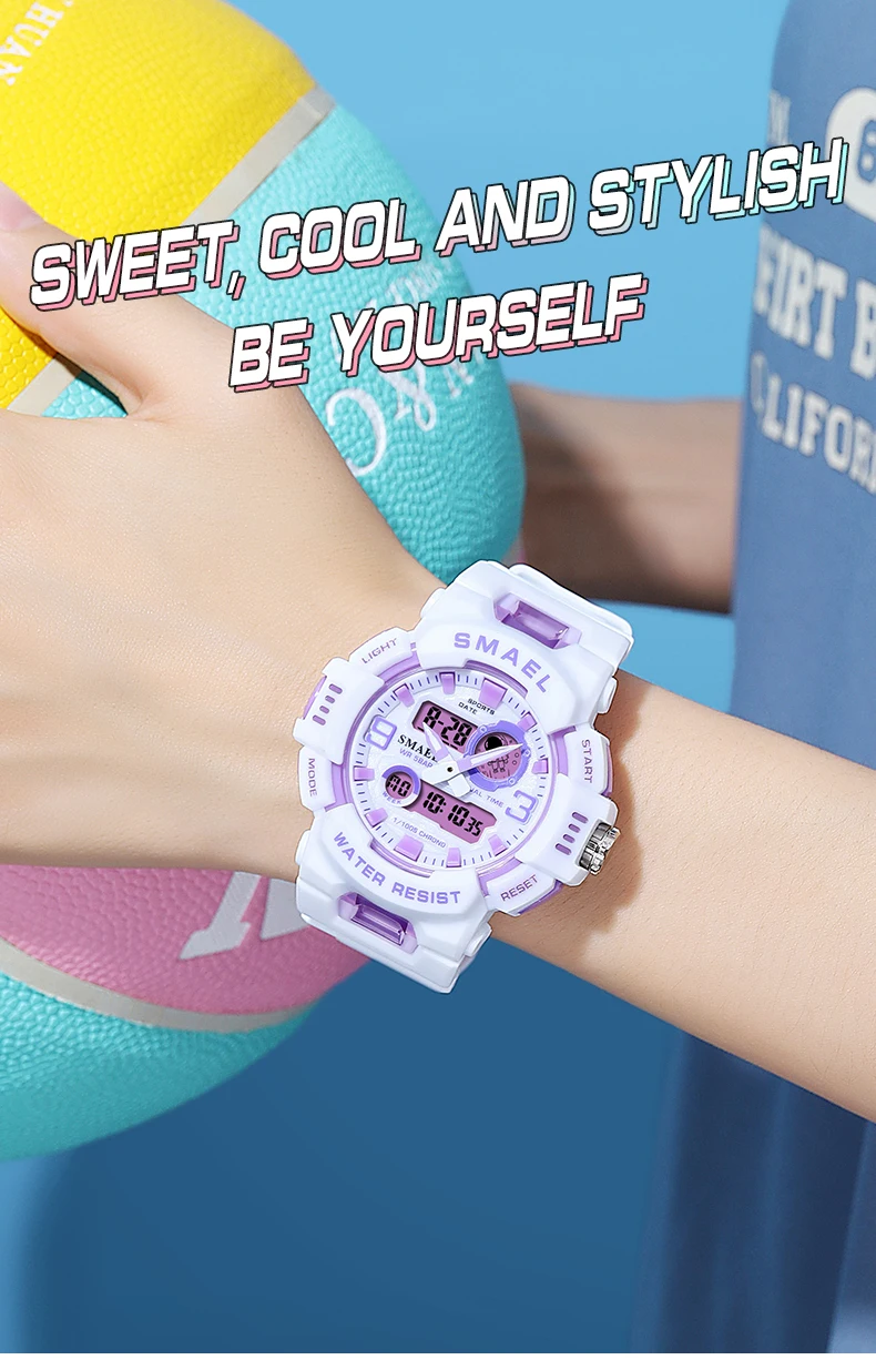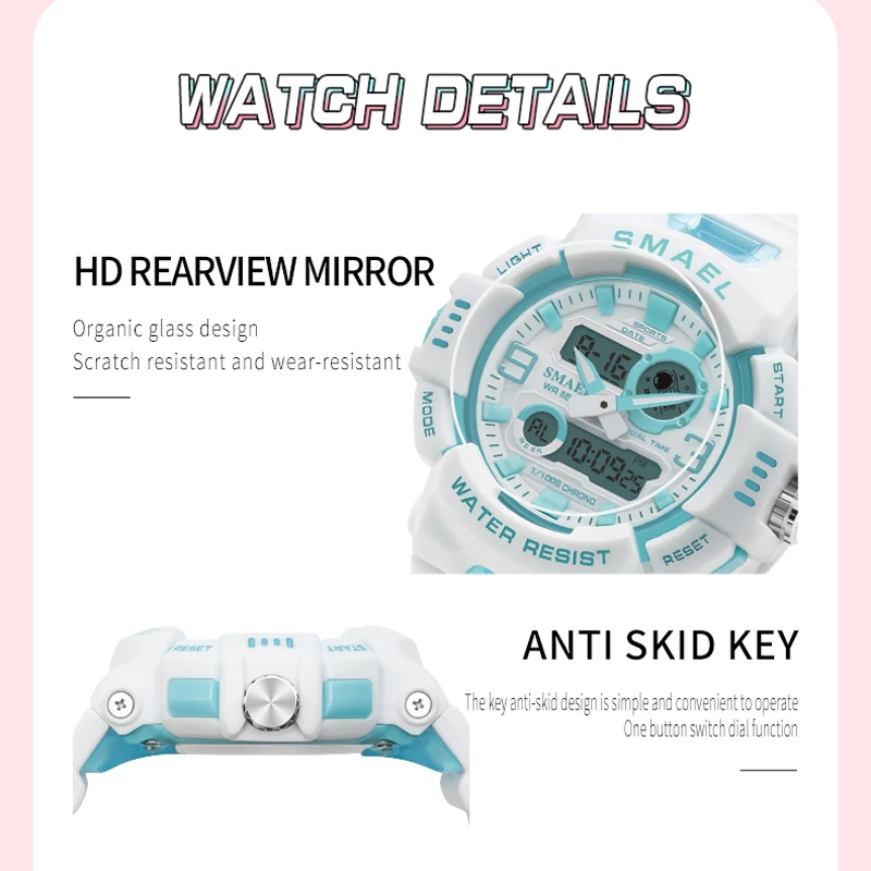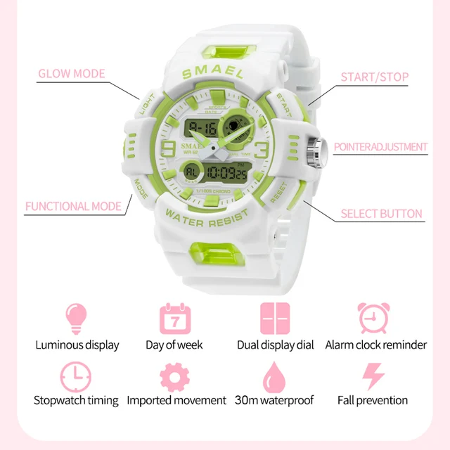 SMAEL Midsize Digital Watch Women Youth Vitality Multifunctional Sport Electronic and Quartz Wristwatch School Girl Stopwatch
