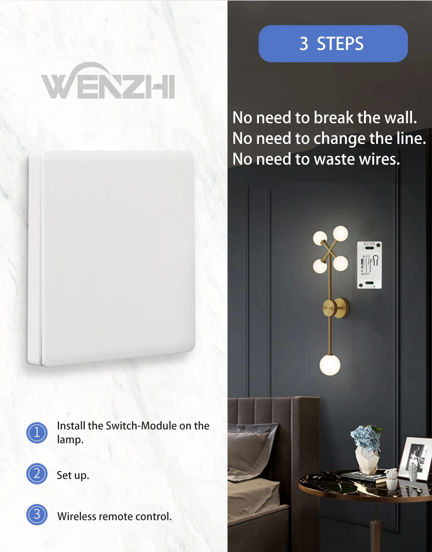 Wenzhi Wieless RF433 Mhz receiver & wall panel transmitter