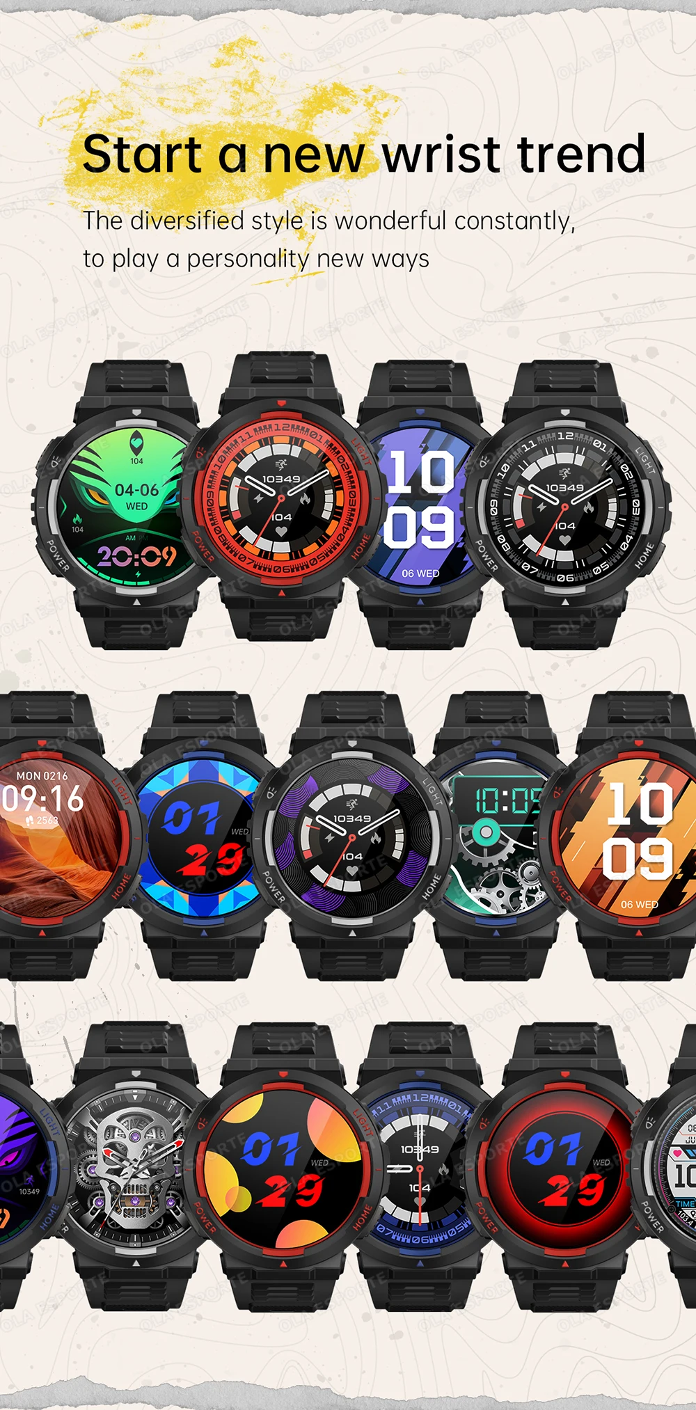 4.【multiple watch faces】There are multiple watch faces to choose from, also you can choose a picture you like to customize the smart watch face to show your personality.
