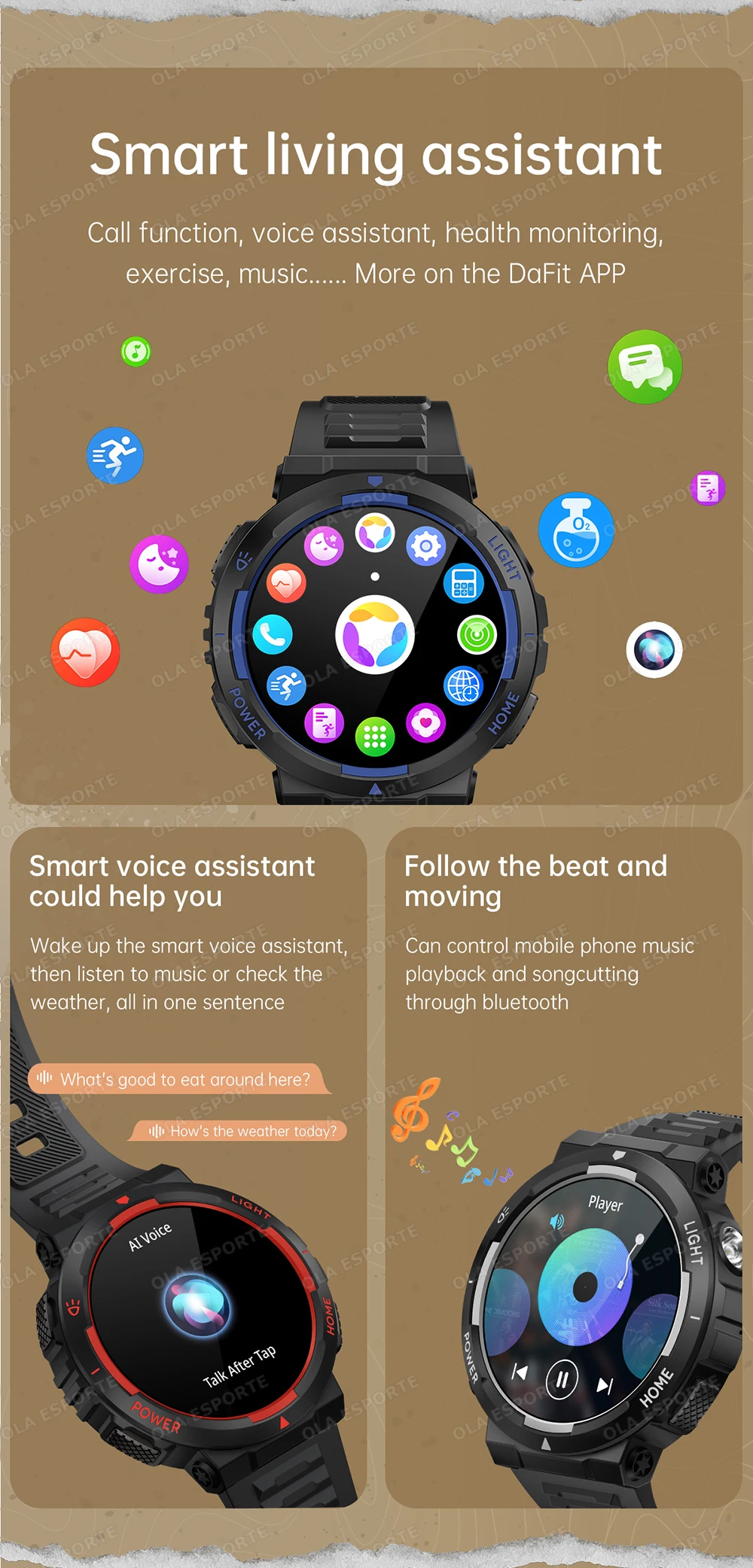 7.【Voice Assistant Functionality】Equipped with voice assistant functionality, this smart watch allows you to make Bluetooth calls and access voice services, offering convenience and ease of use.