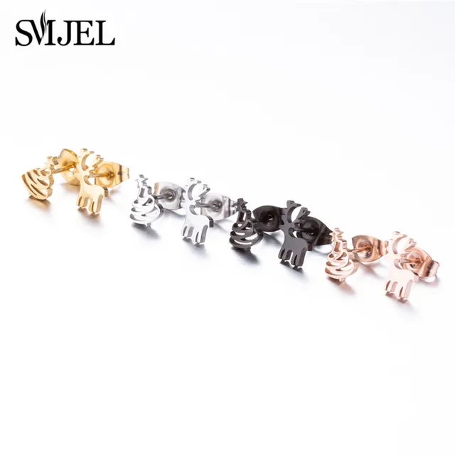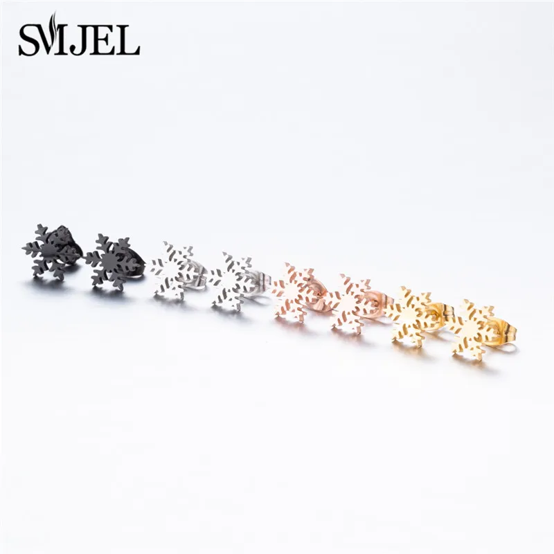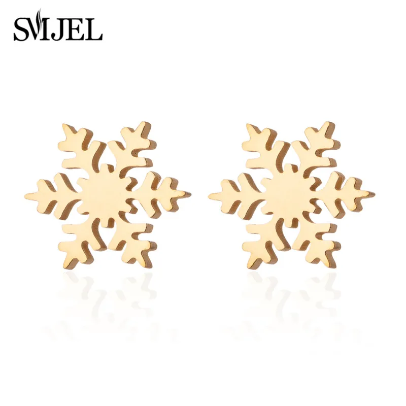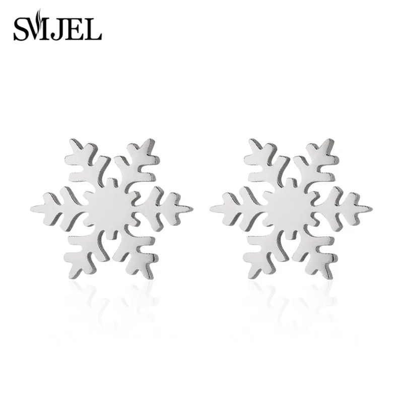 SMJEL Cartoon Animal Deer Stud Earrings Small Snowflake Earing for Girls Stainless Steel Christmas Jewelry
