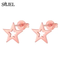 SMJEL Fashion Bohemian Vintage Earrings Jewelry Cute Black Geometric Round Stainless Steel Stud Earring