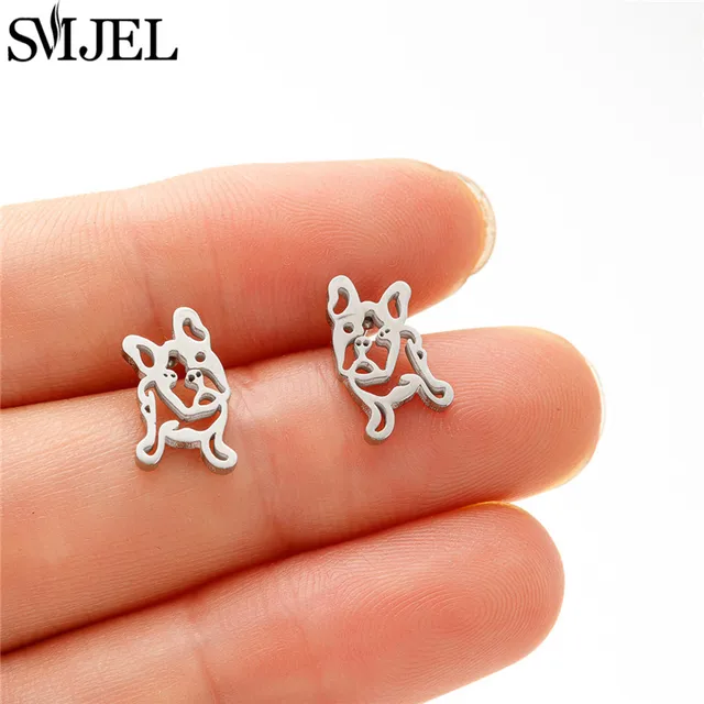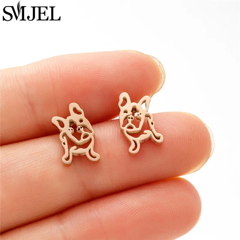 SMJEL Stainless Steel French Bulldog Earrings for Women Girls Novelty Animal Jewelry Chihuahua Dog Ear