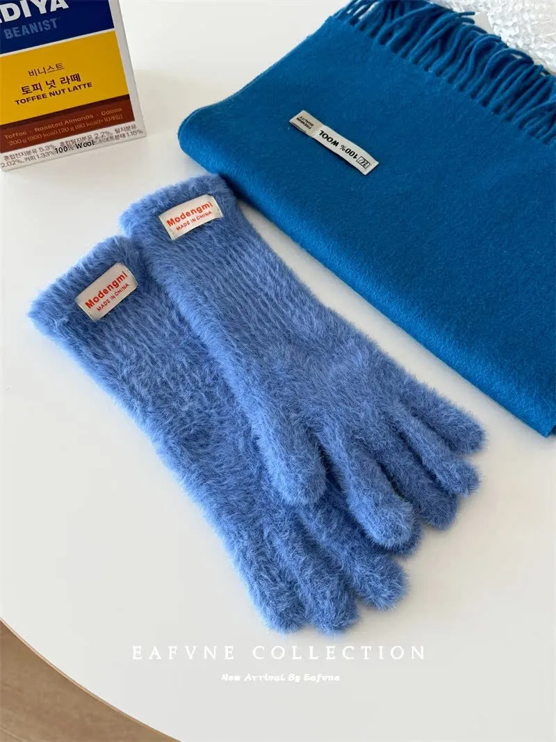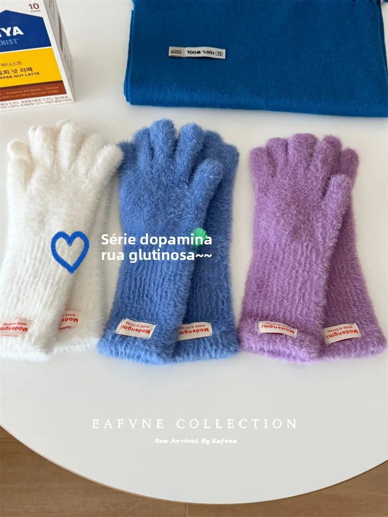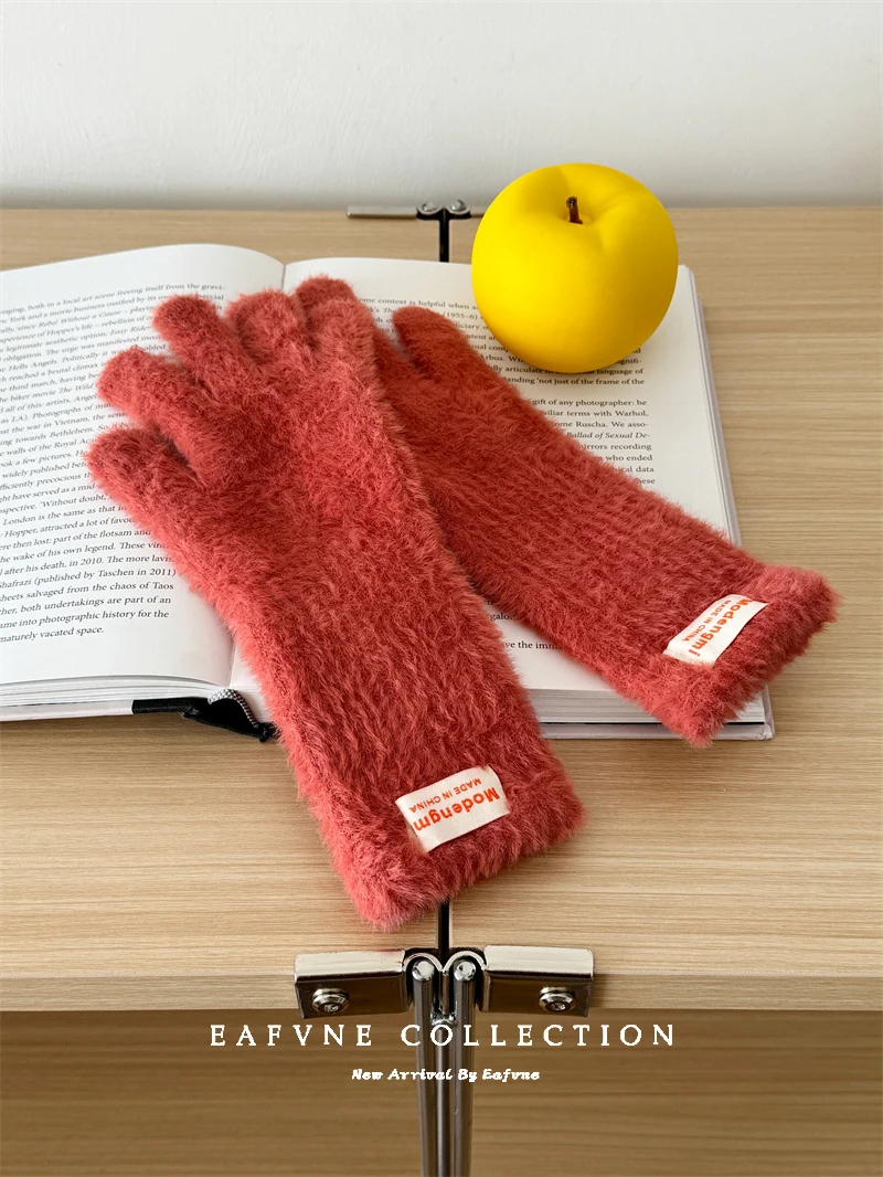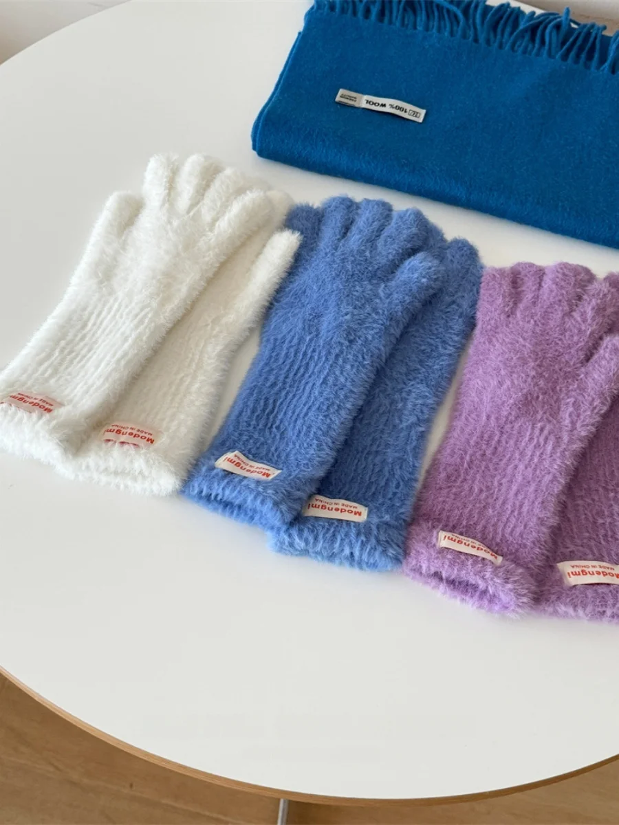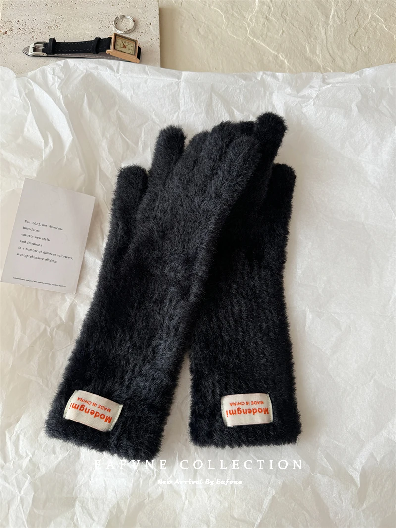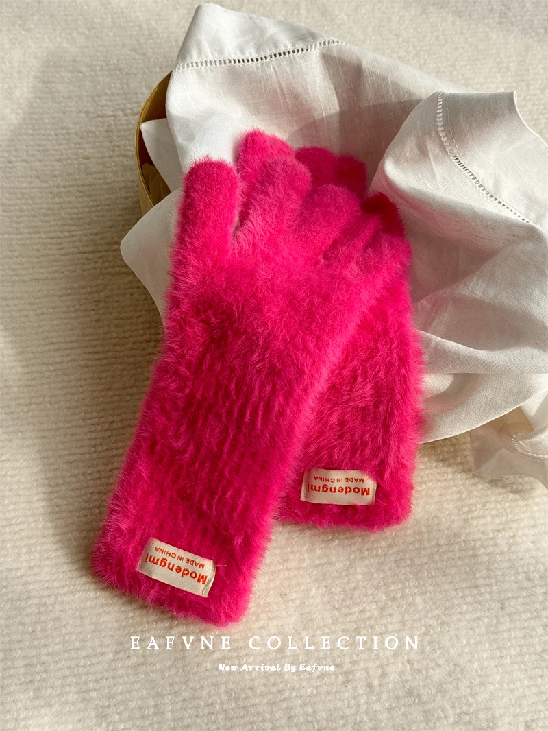 Soft Fluffy Warm Touchscreen Winter Gloves Women's Cycling Thermal Five-Fingered Versatile  Color New Arrival Handwear