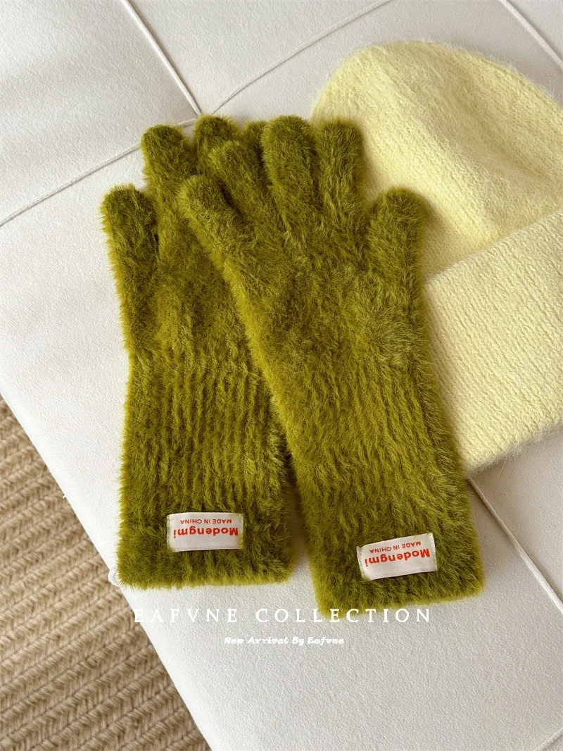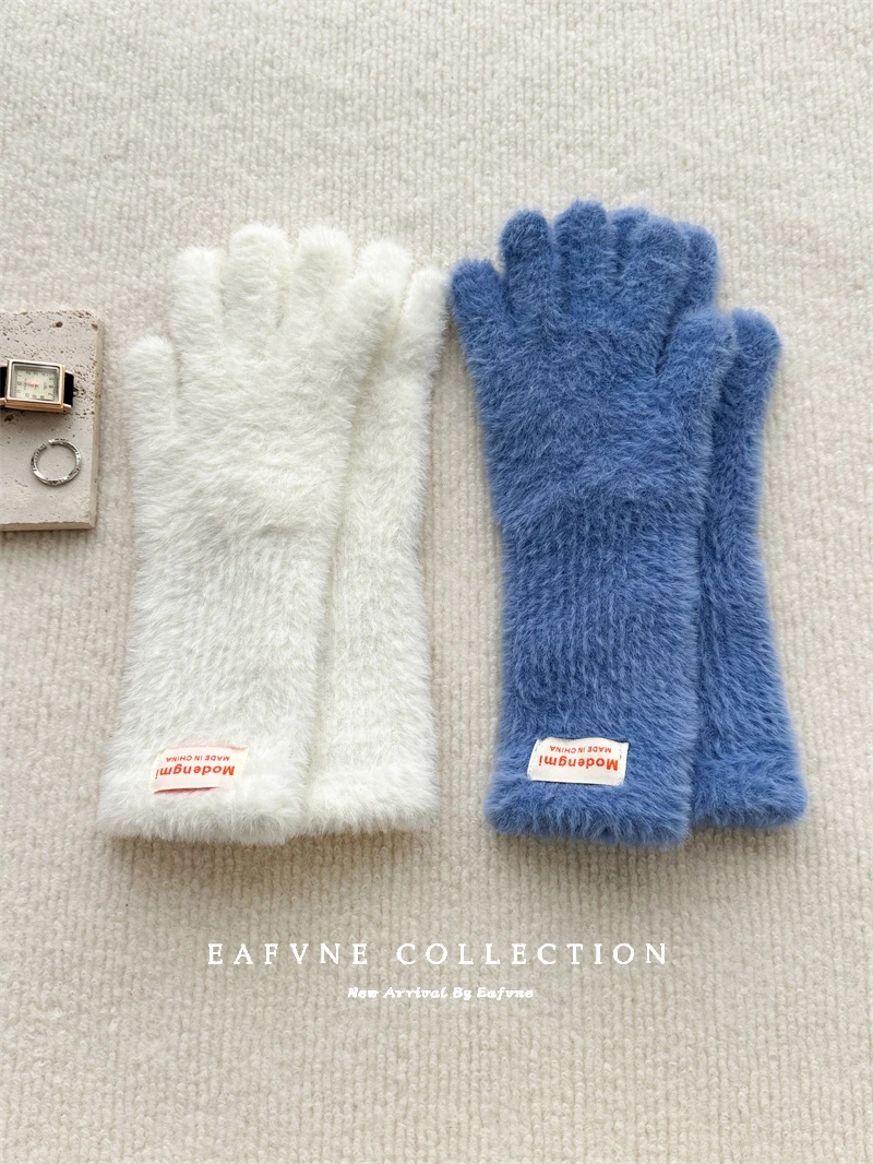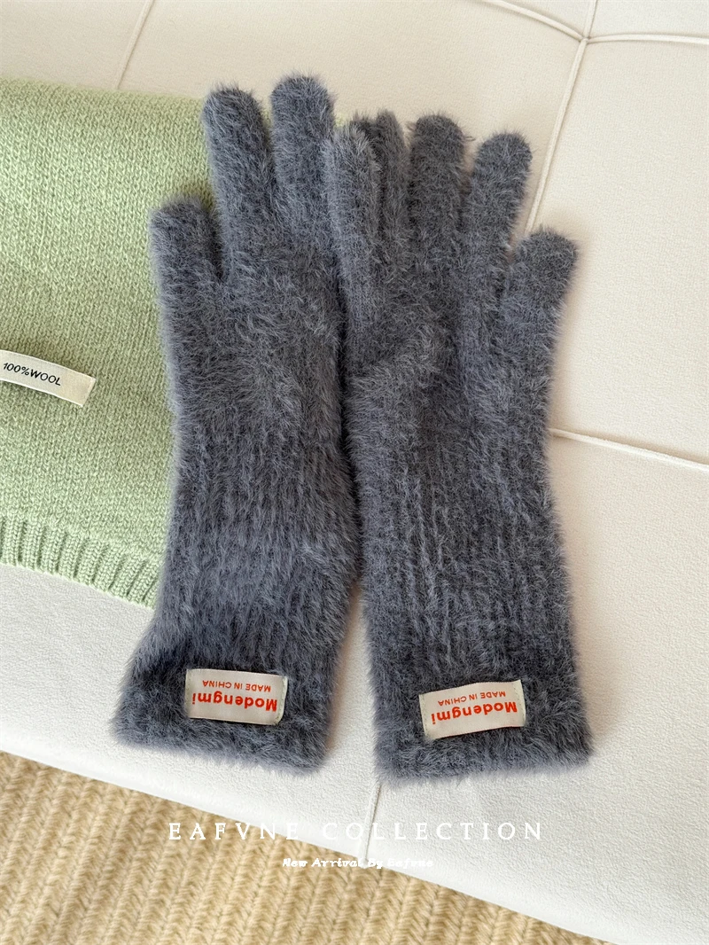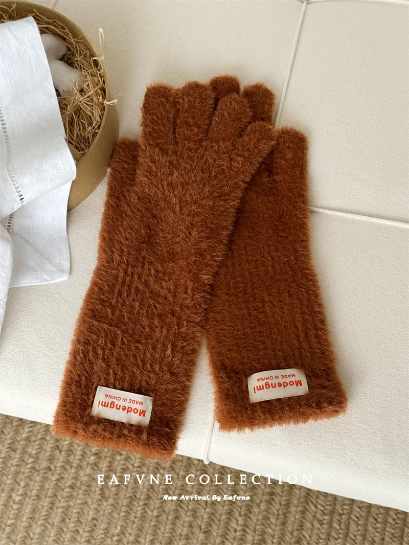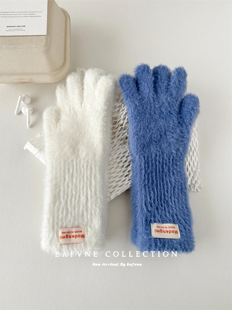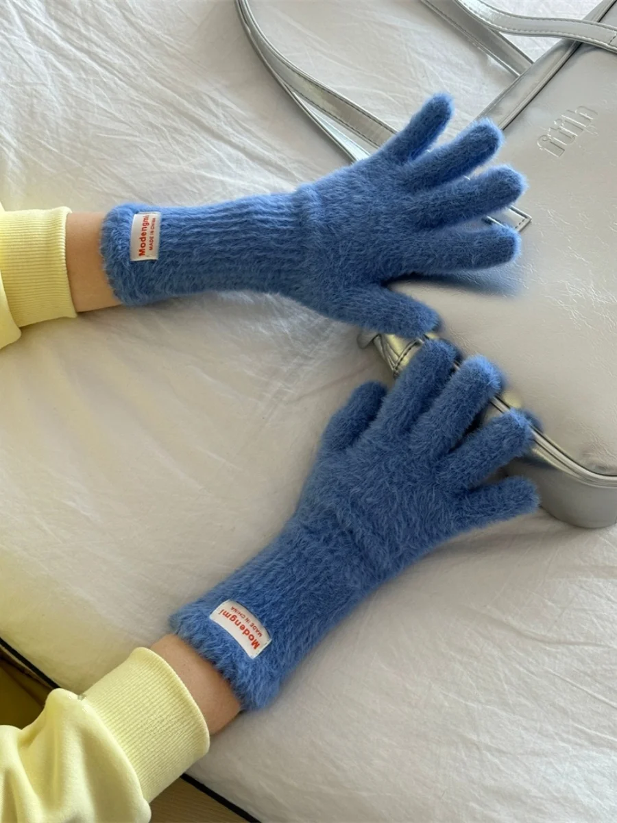 Soft Fluffy Warm Touchscreen Winter Gloves Women's Cycling Thermal Five-Fingered Versatile  Color New Arrival Handwear