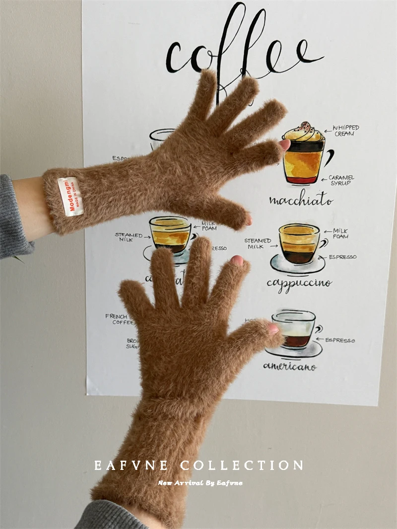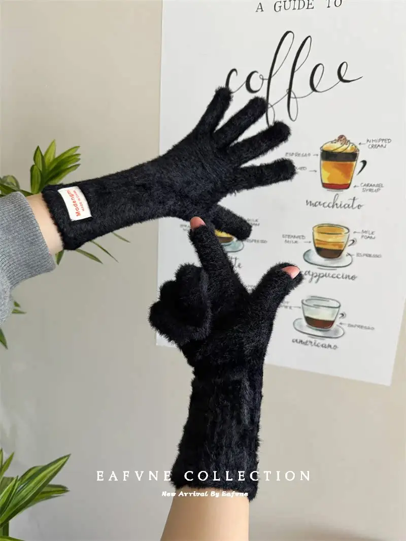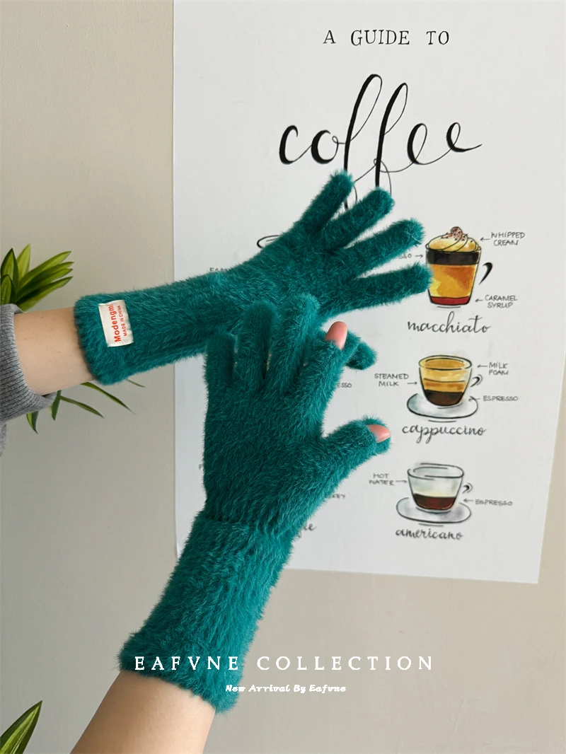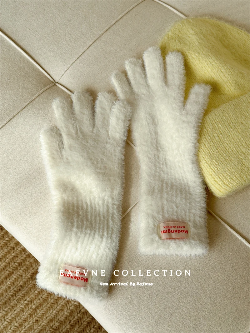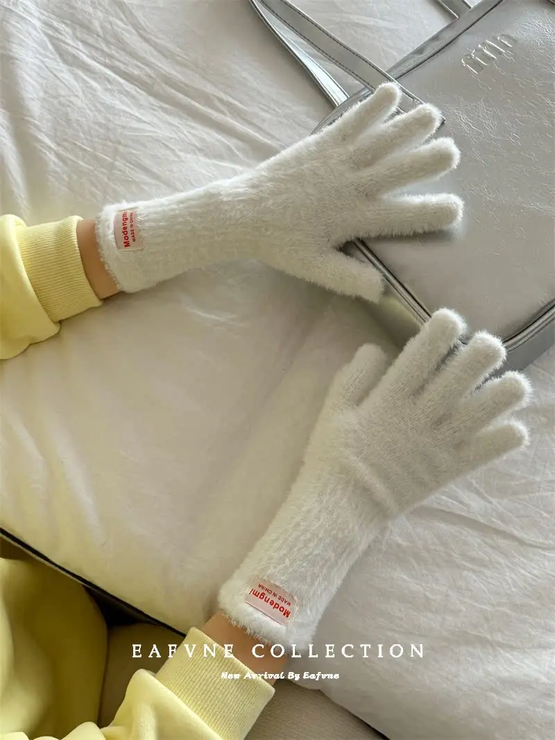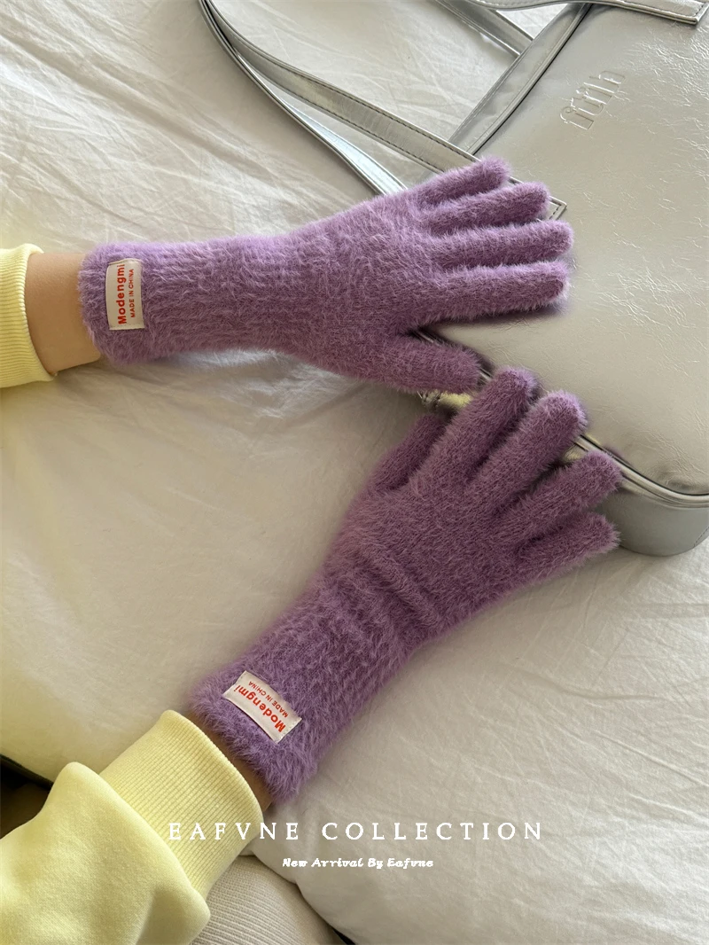 Soft Fluffy Warm Touchscreen Winter Gloves Women's Cycling Thermal Five-Fingered Versatile  Color New Arrival Handwear