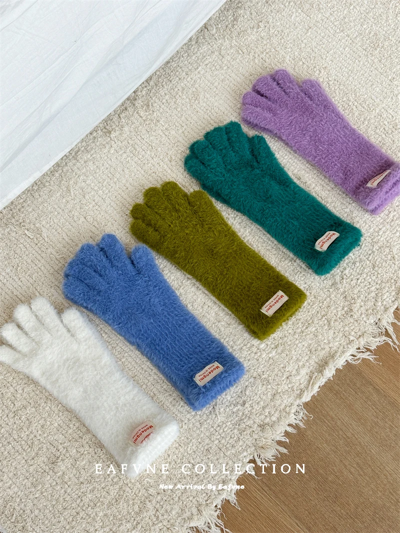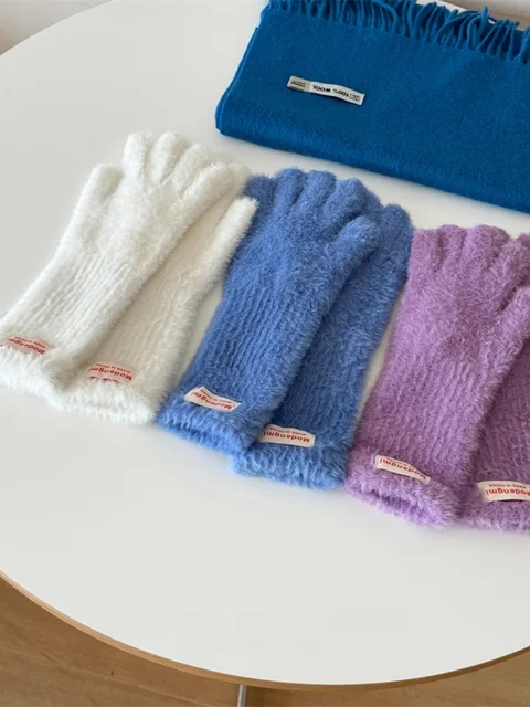 Soft Fluffy Warm Touchscreen Winter Gloves Women’s Cycling Thermal Five-Fingered Versatile Color