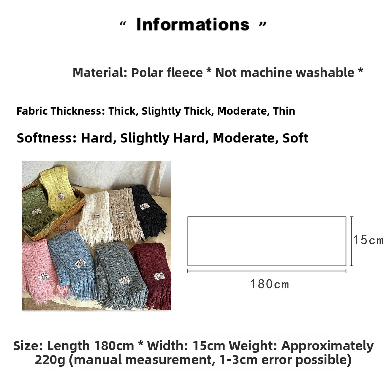 Crafted from a blend of 61%-70% acrylic and 10% wool, this scarf offers superior warmth during winter months.