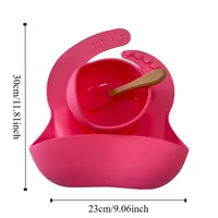 Soft Silicone Baby Feeding Bowl Silicone Dinnerware Children Dishes Bibs Set 3Pcs Set Bibs/Bowl/Spoon Kids Feeding Bowls