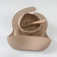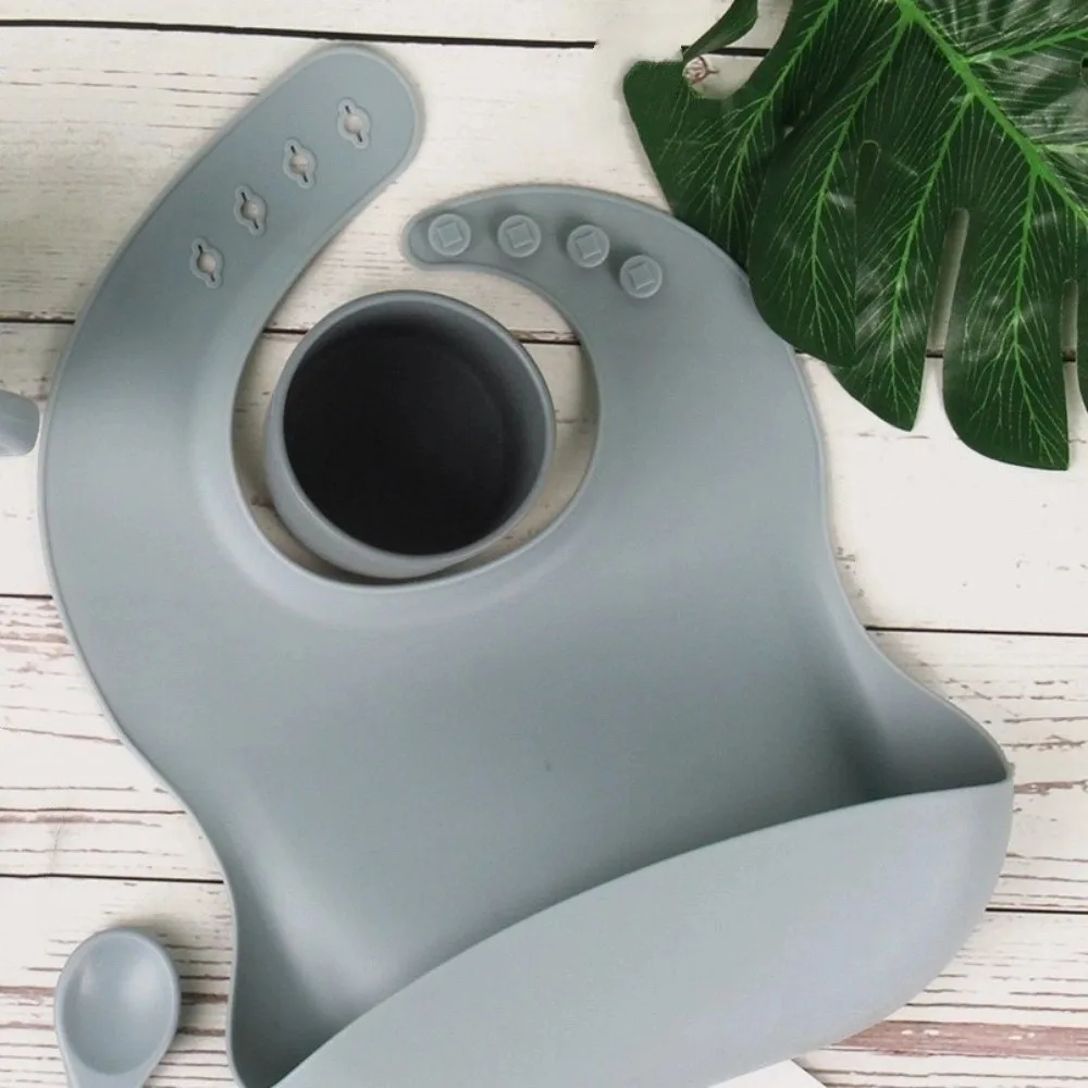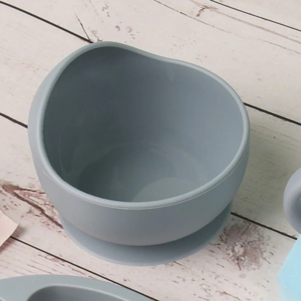 Soft Silicone Baby Feeding Bowl Silicone Dinnerware Children Dishes Bibs Set 3Pcs Set Bibs/Bowl/Spoon