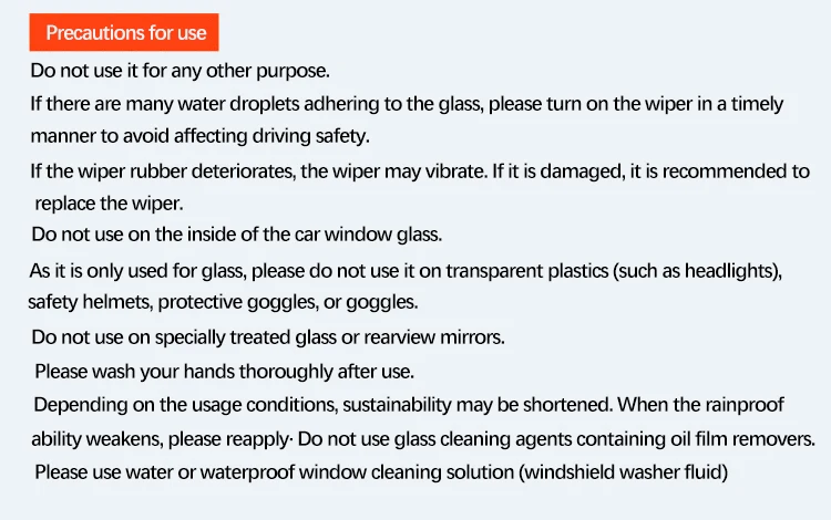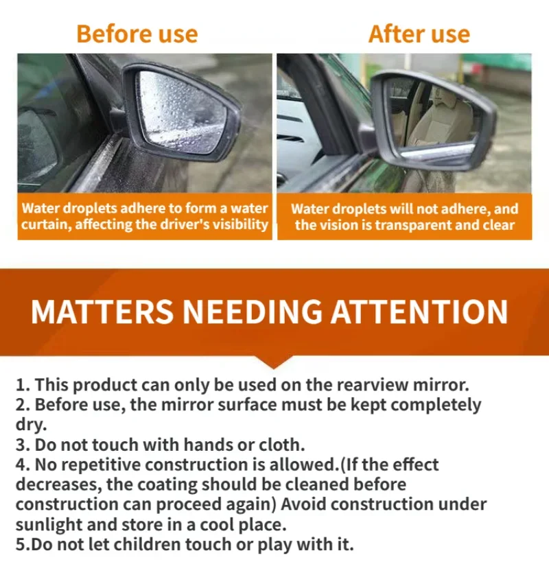 Versatile: The coating is safe for use on all types of windows, including tinted windows, mirrors, and glass surfaces, ensuring effective water repellency and a clear view while driving in any weather conditions.