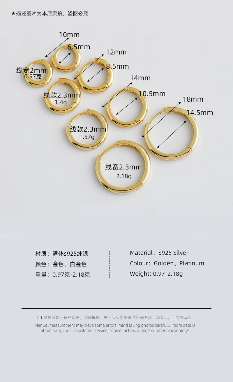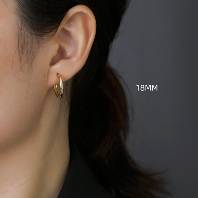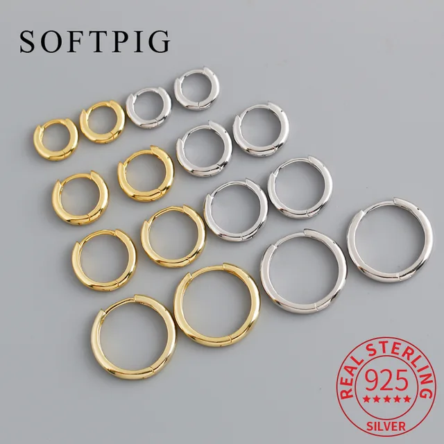 SOFTPIG Real 925 Sterling Silver 18K Gold 10/12/14/18MM Round Hoop Earrings for Women Fine Jewelry Minimalist