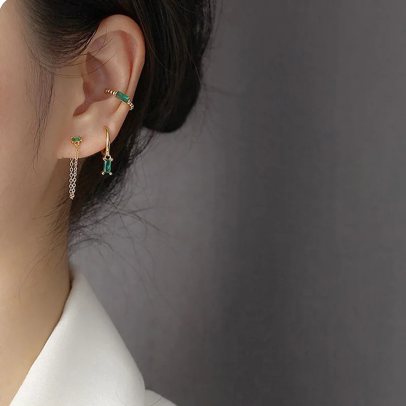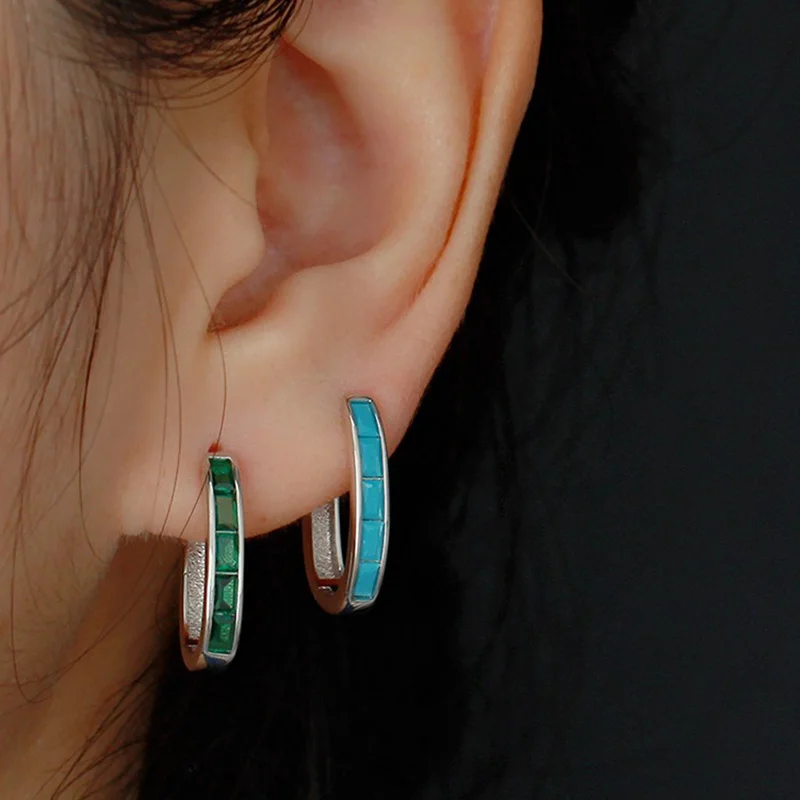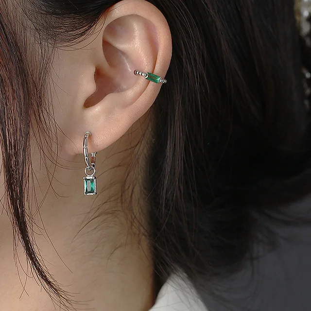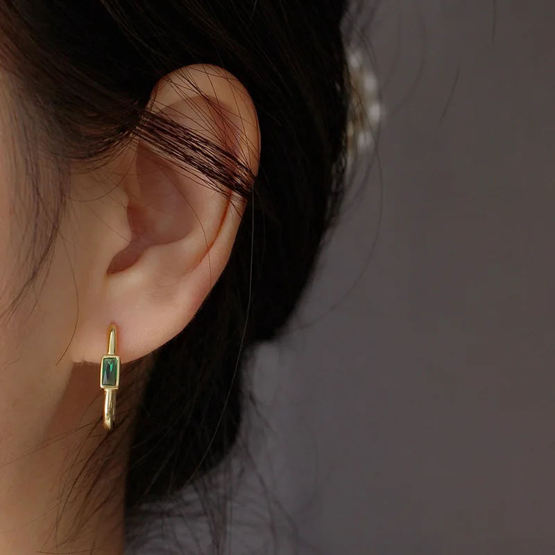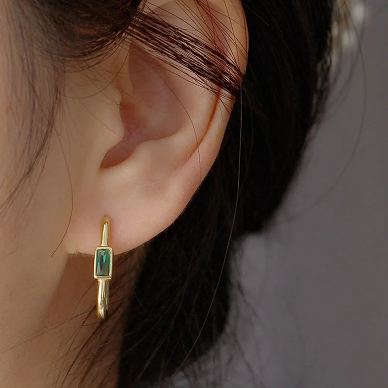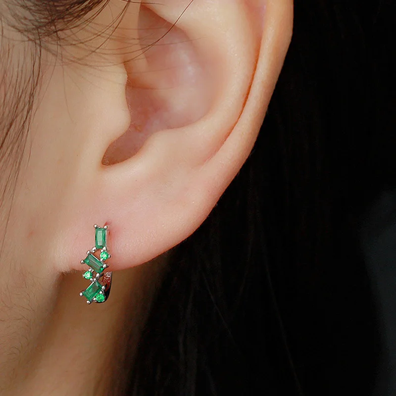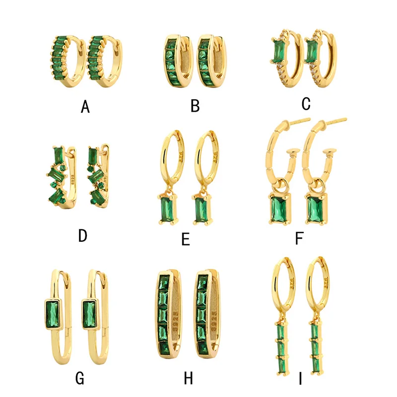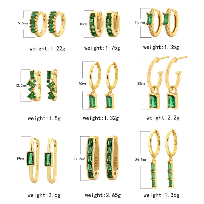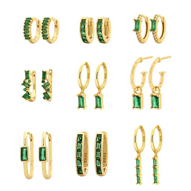 SOFTPIG Real 925 Sterling Silver Emerald Zircon Geometric 18K Gold Hoop Earrings for Women Cute Fine