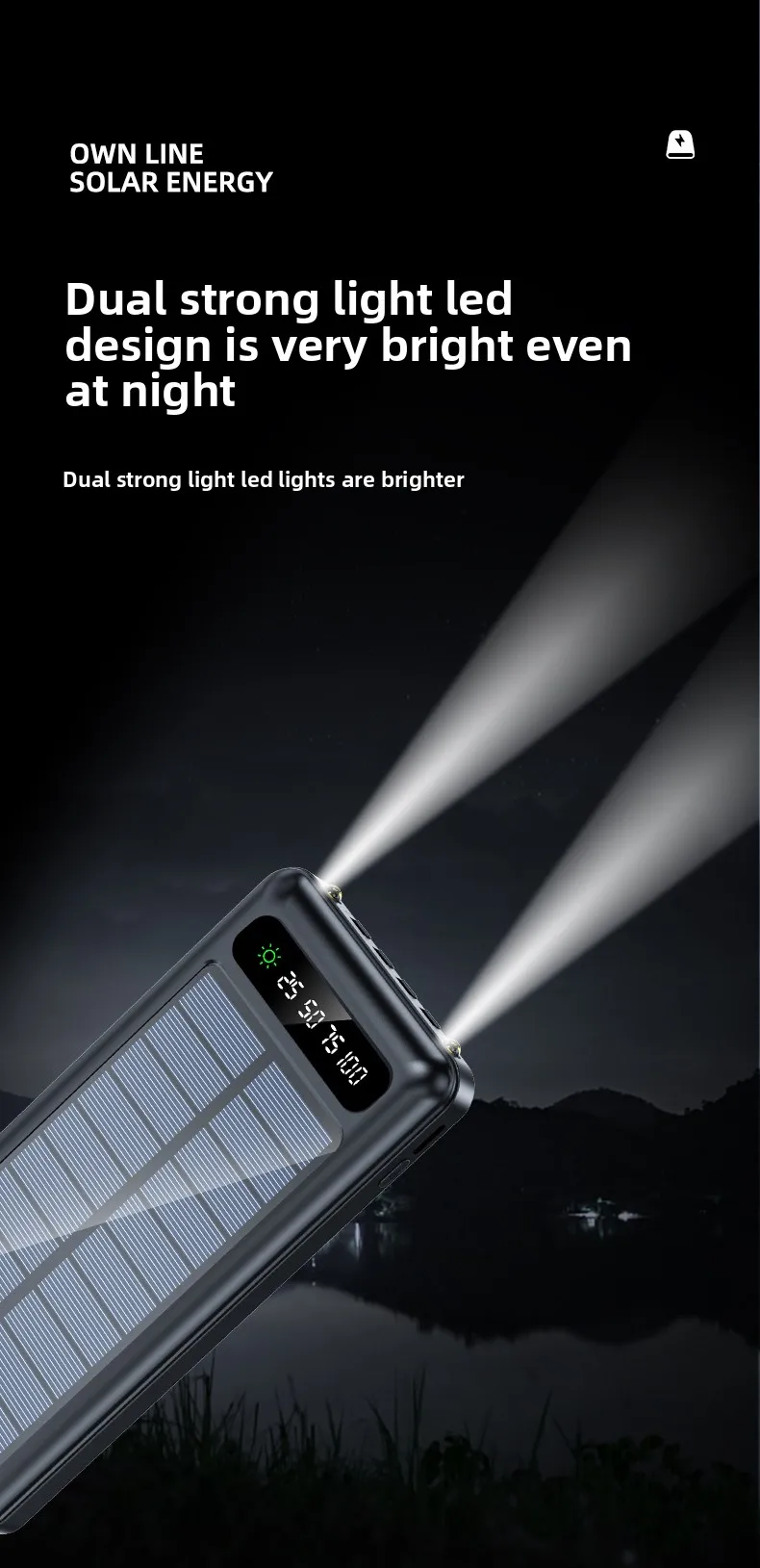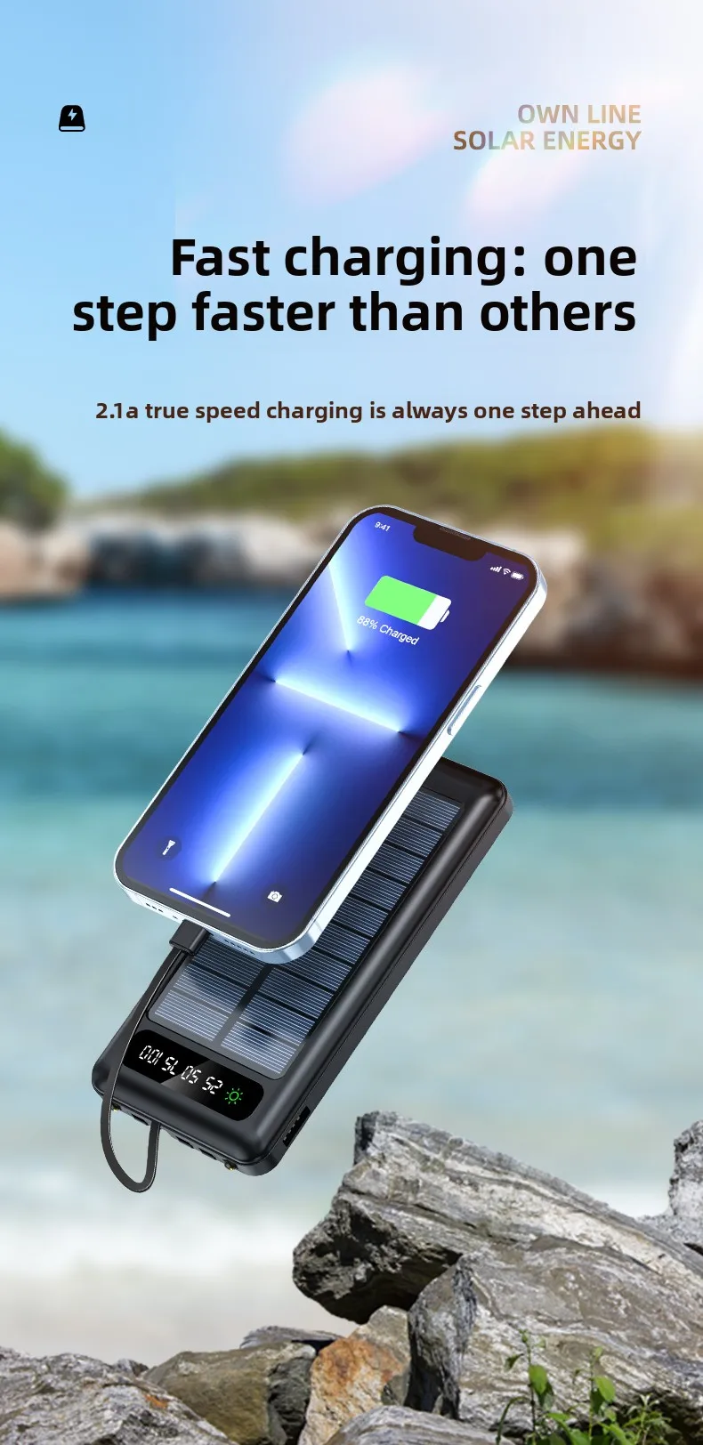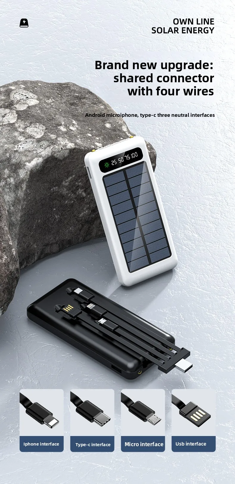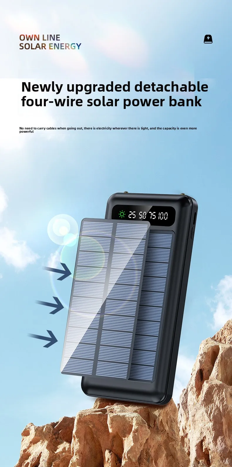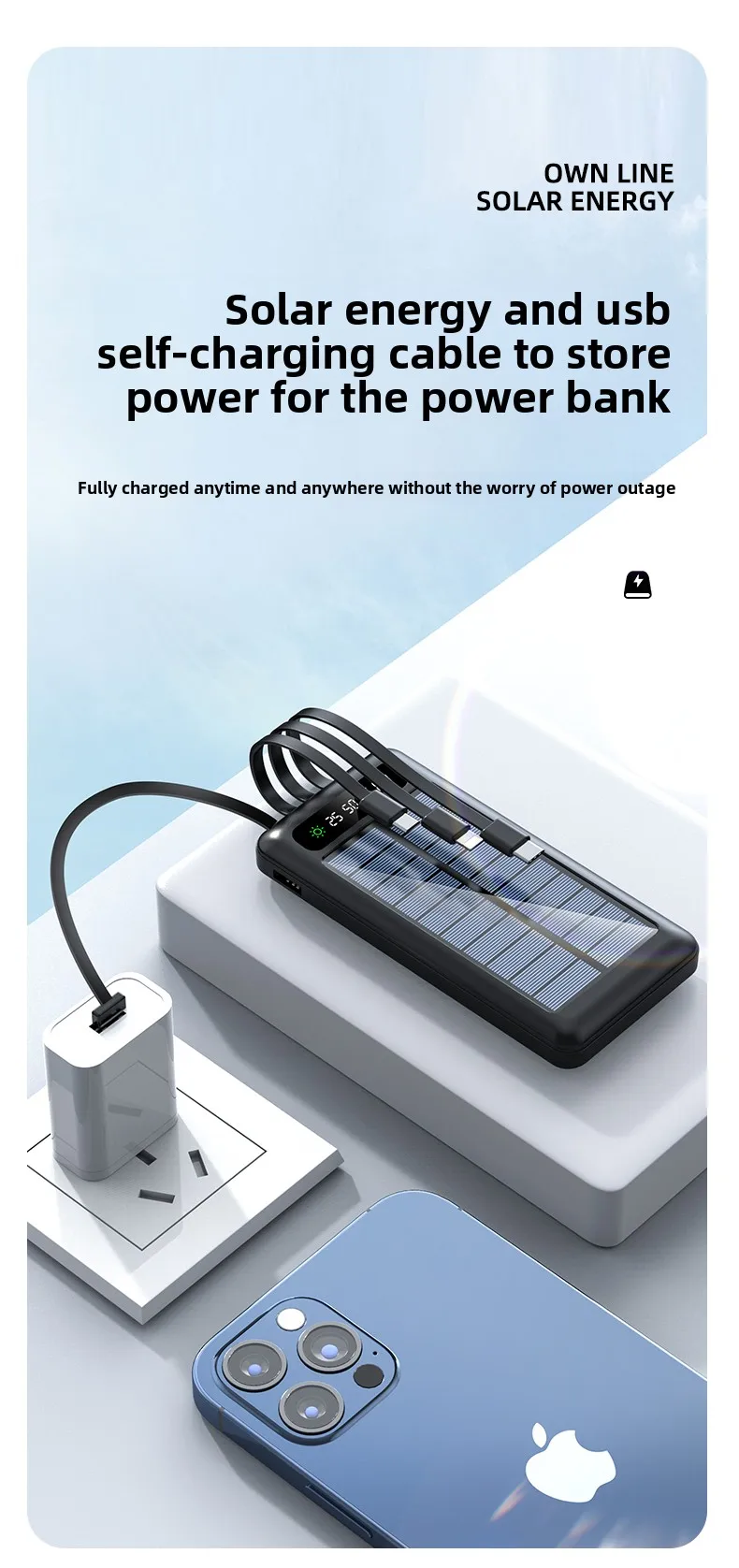 Solar Power Bank 20000mAh Fast Charging Dual USB 4 Cables LED Display Portable Charger Compatible with