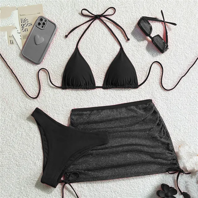Be the first to review “Solid Brown Swimwears String Halter Triangle 3 Piece Bikini Set Sexy Swimsuit Women 2025 Mesh Skirts”