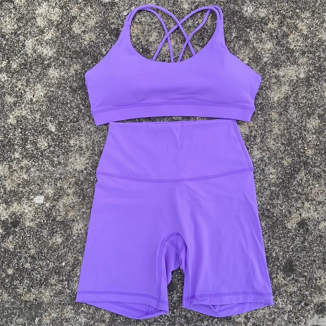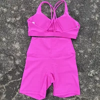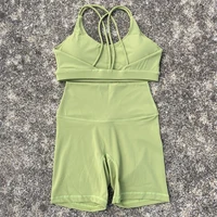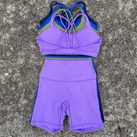 Solid Color Gym Bike Yoga Set Short Legging Cross Back Sport Bra 2pc Tracksuit Athletic Women Gym Suit