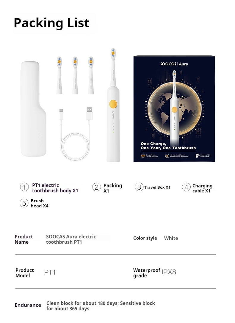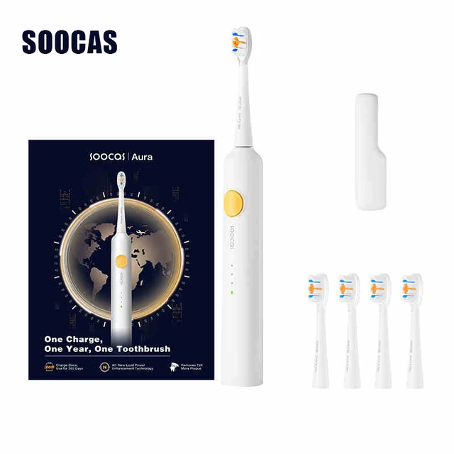 SOOCAS Aura PT1 Sonic Electric Toothbrush 180 Days Battery Life ipx7 Waterproof Automatic Toothbrush With 4 Nozzles