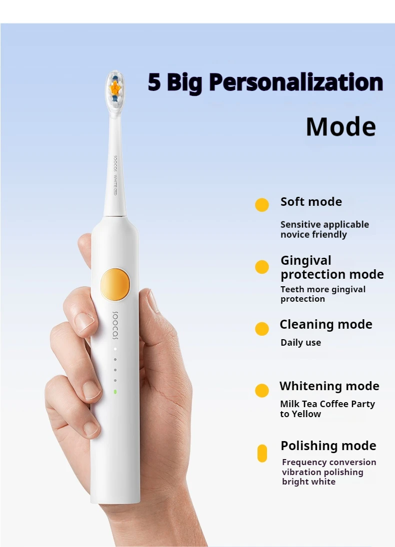 4. Modes:Cleaning mode/Whitening mode/Gentle mode/Polishing and whitening mode