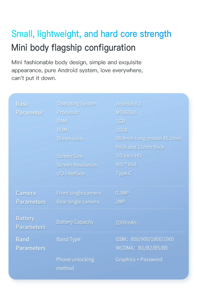 SOYES XS15-Mini Smartphone Android 3.0 inch 2+16GB ROM Google Play Store 1000mAh Mobile phones Dual SIM