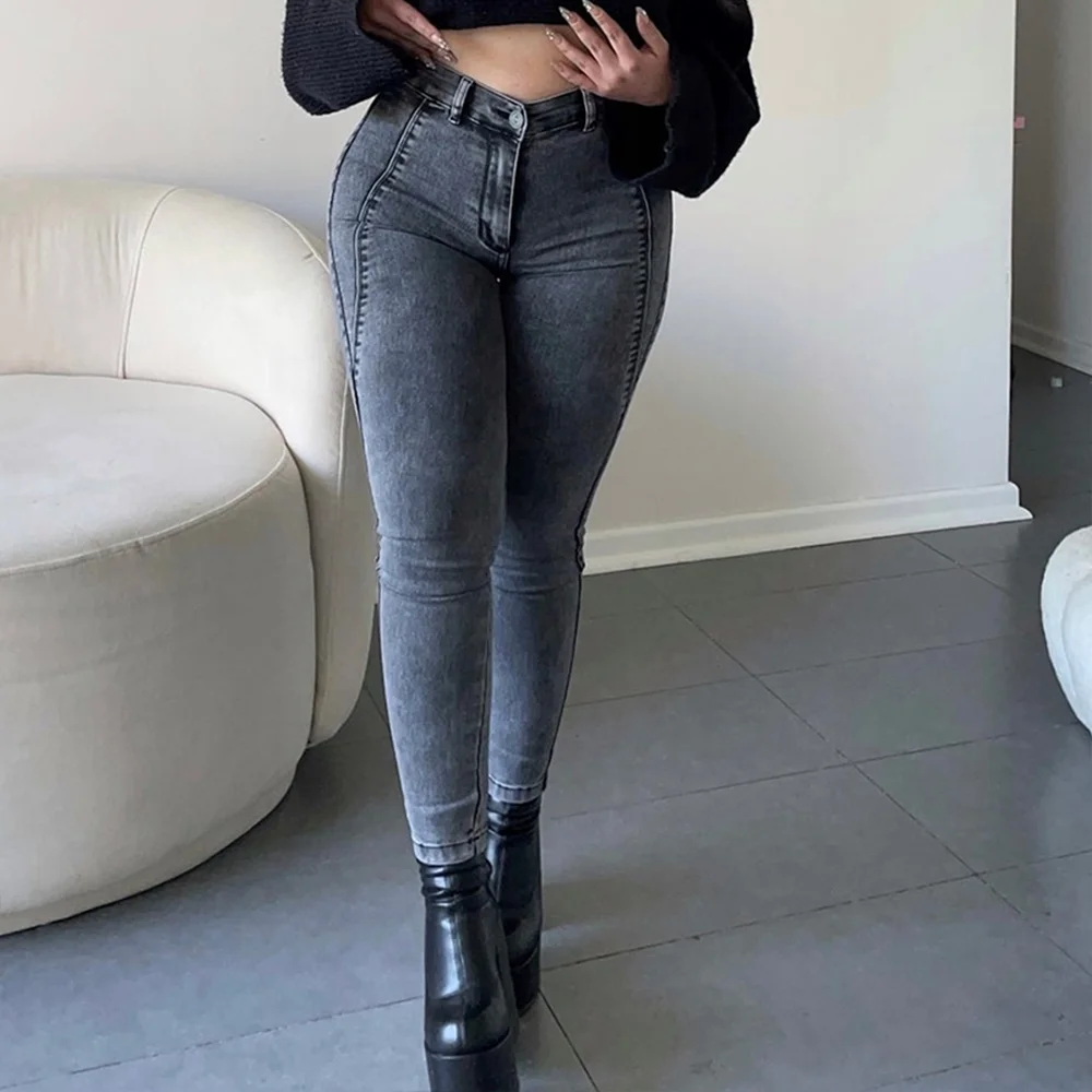 Black Gray Leggings High-waist Skinny Jeans Women Small Feet Slim Slim Stretch Pencil Denim Pants New Autumn Winter Trousers