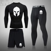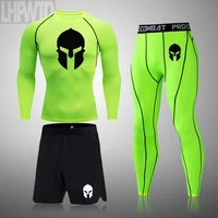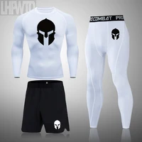 Spartan Men Compression Running Set MMA Long Sleeve T-Shirt+Pants Men's Tight Fitness Clothes Gym Jogging Rashguard Sport Suit