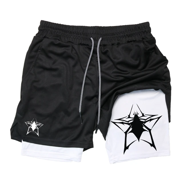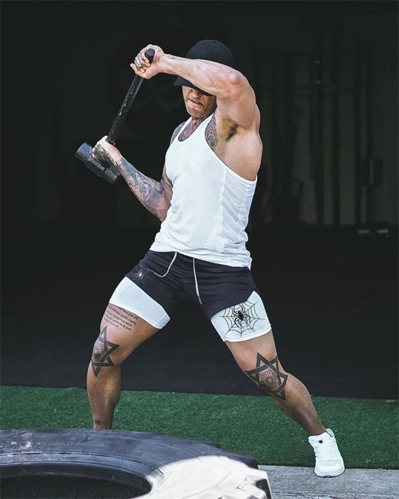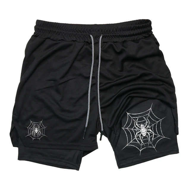 Spider Print 2 in 1 Performance Shorts for Men Gym Workout Running Shorts with Phone Pocket Summer Sport