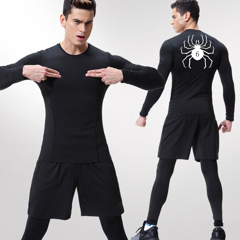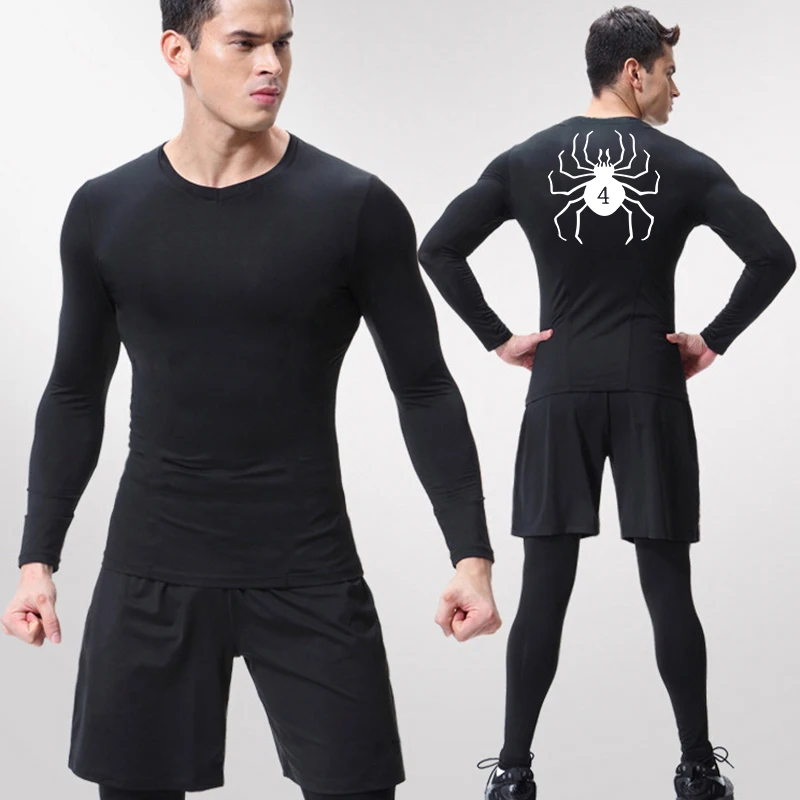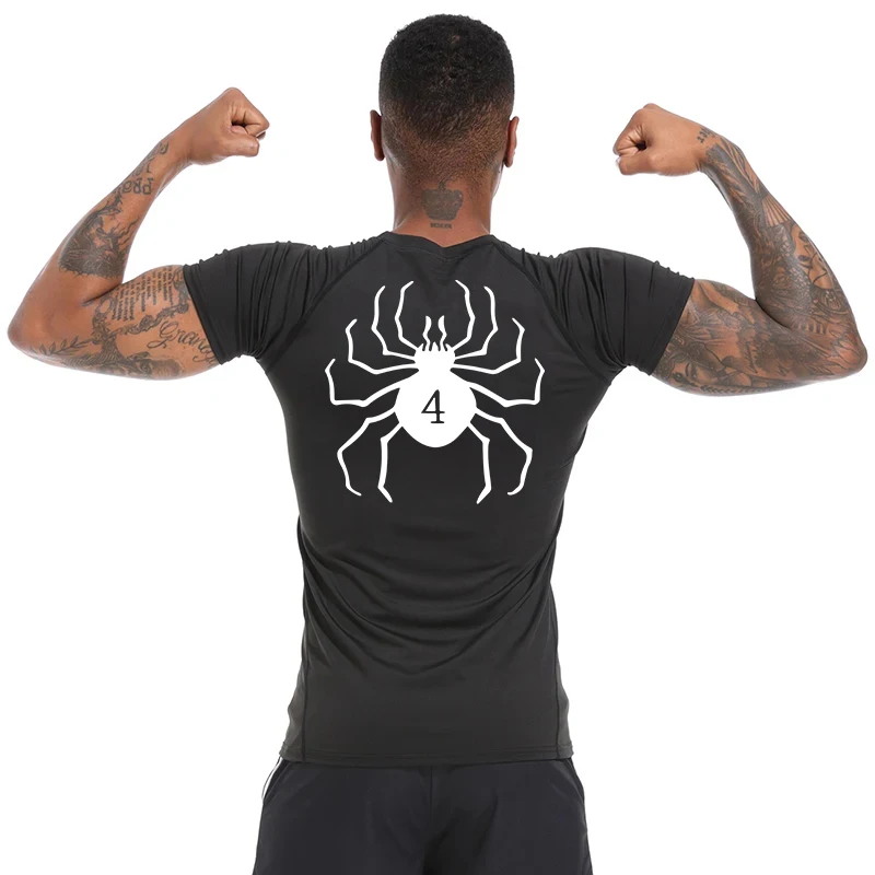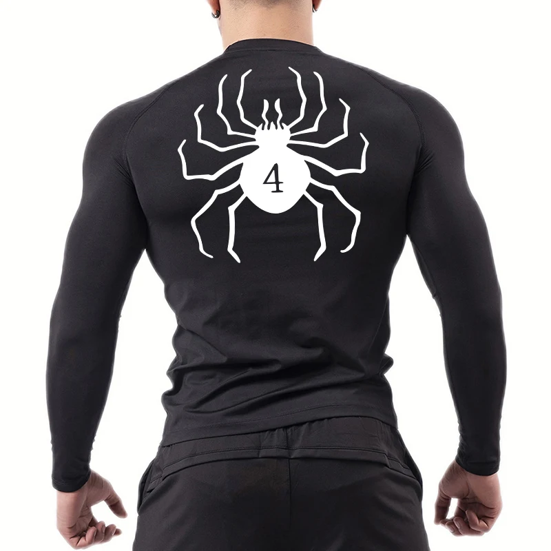 Spider Print Compression Shirts for Men Athletic Quick Dry Tshirts Tops Gym Workout Running Undershirts Baselayers Rash Guard