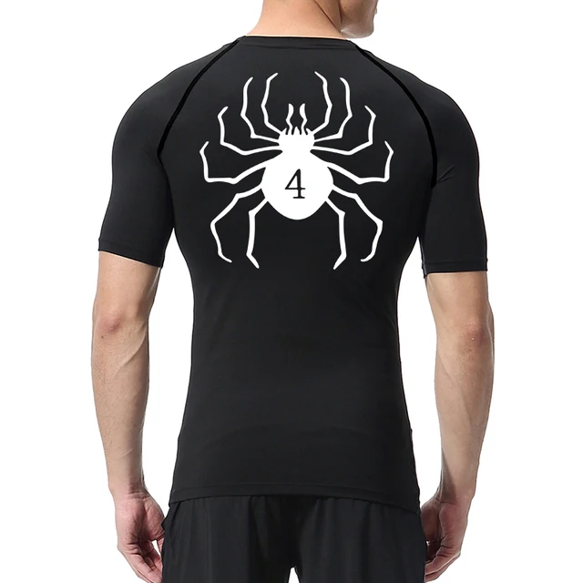 Spider Print Compression Shirts for Men Athletic Quick Dry Tshirts Tops Gym Workout Running Undershirts Baselayers Rash Guard