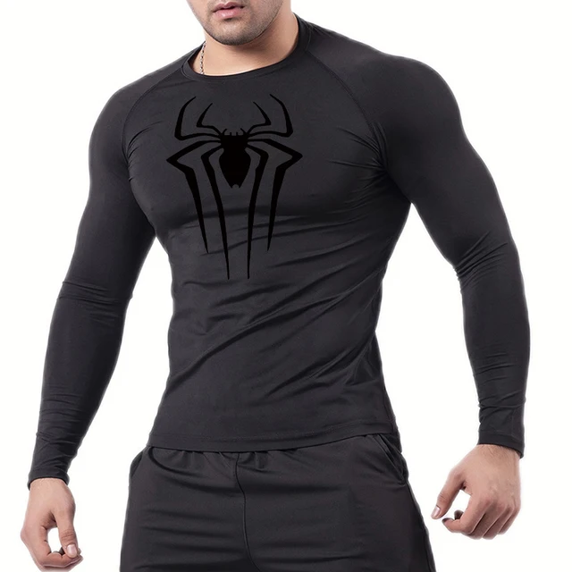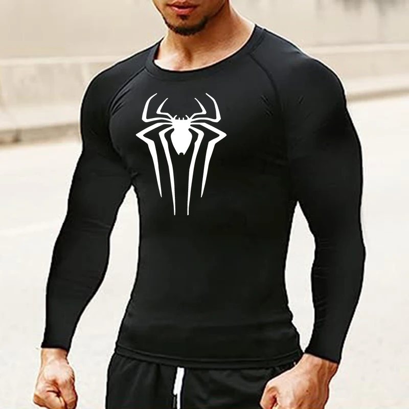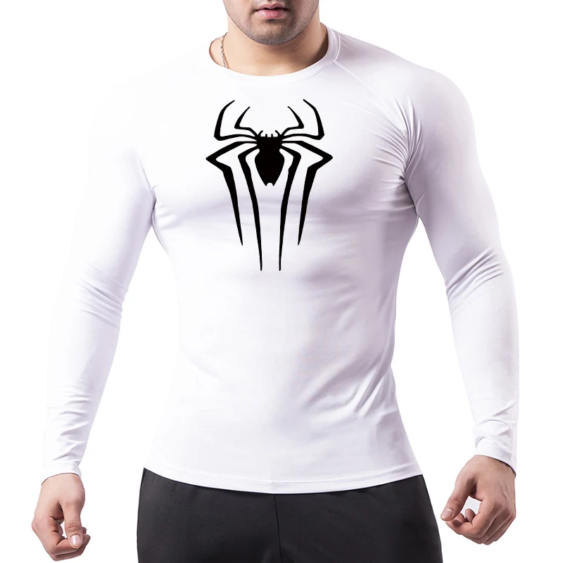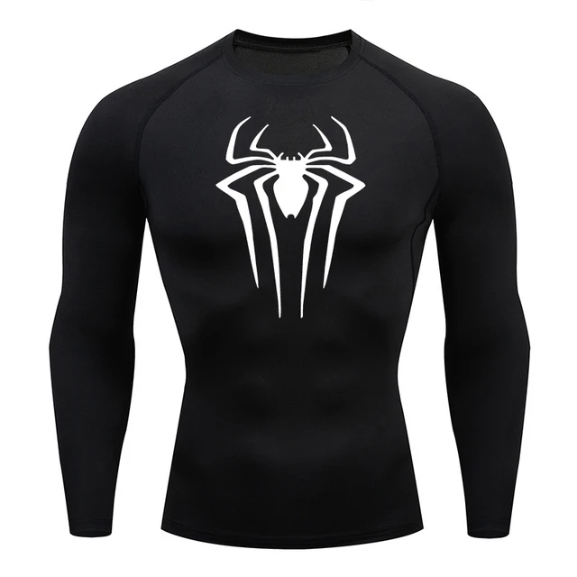 Spider Print Long Sleeve Compression Shirts for Men Gym Workout Rash Guard Undershirts Baselayers Athletic Quick Dry Tees Tops