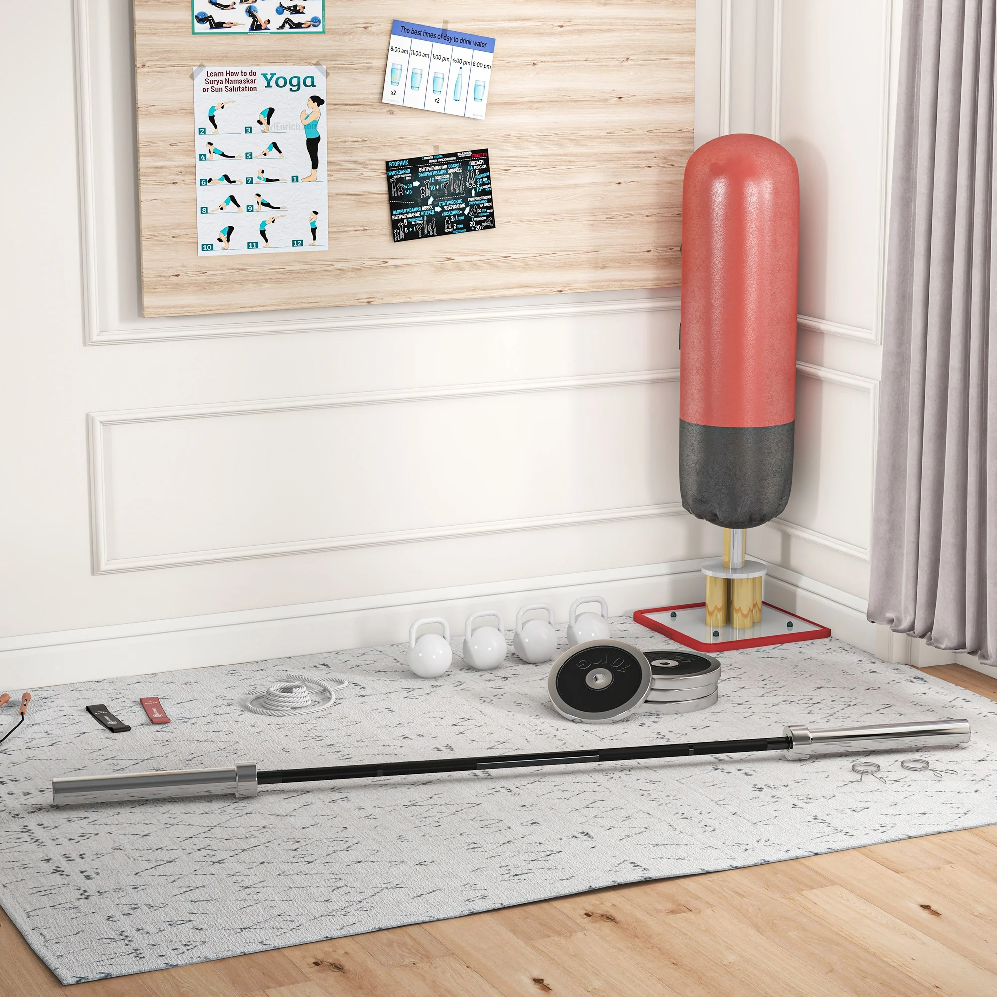 Increase your strength with our SPORTNOW Olympic weight bar. The ideal equipment for bench presses, squats, deadlifts, pendlay rows, military presses and more, ensuring you feel the burn in all muscle groups. Suitable for weight plates with a 5cm hole, it can hold up to 200kg; choose a comfortable weight and get started. Non-slip handles for an excellent grip, whilst the spring clips keep the plates secure, adding safety to your workout. Reach your goals from the comfort of your home.
