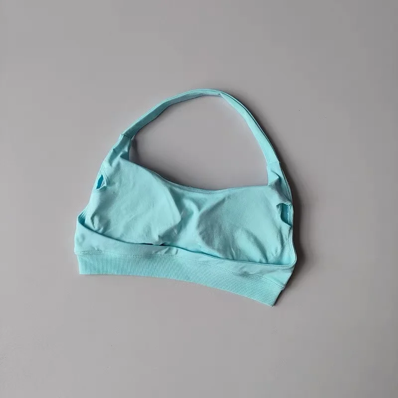 Sports Bra Women Shockproof Seamless Halter Top High Support Push-up Open Back Gym Wear Fitness Yoga