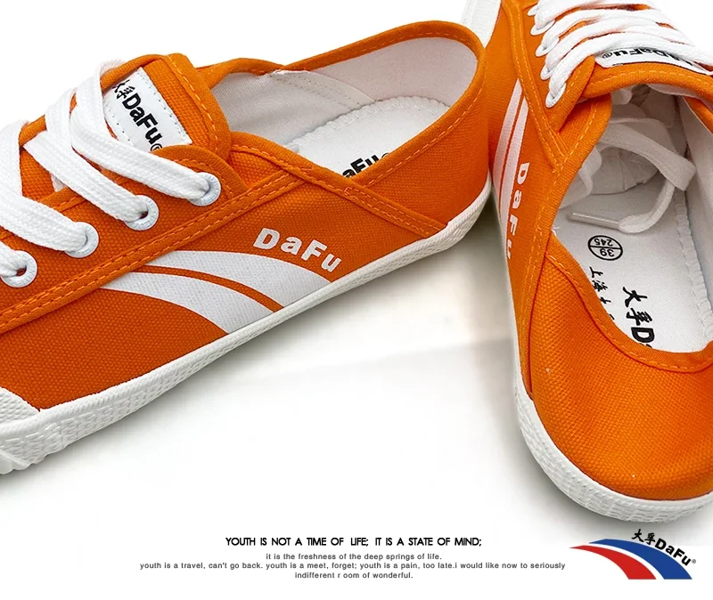 The official Chinese DafuFeiyue are manufactured by either Top One or DaFu in China. It’s important that the distinction is made between the Chinese DafuFeiyues, which are still made as a sporting staple, and the American DafuFeiyues that are a fashion and lifestyle shoe: an American company having acquired the rights to produce shoes with the DafuFeiyue logo and branding in 2006.