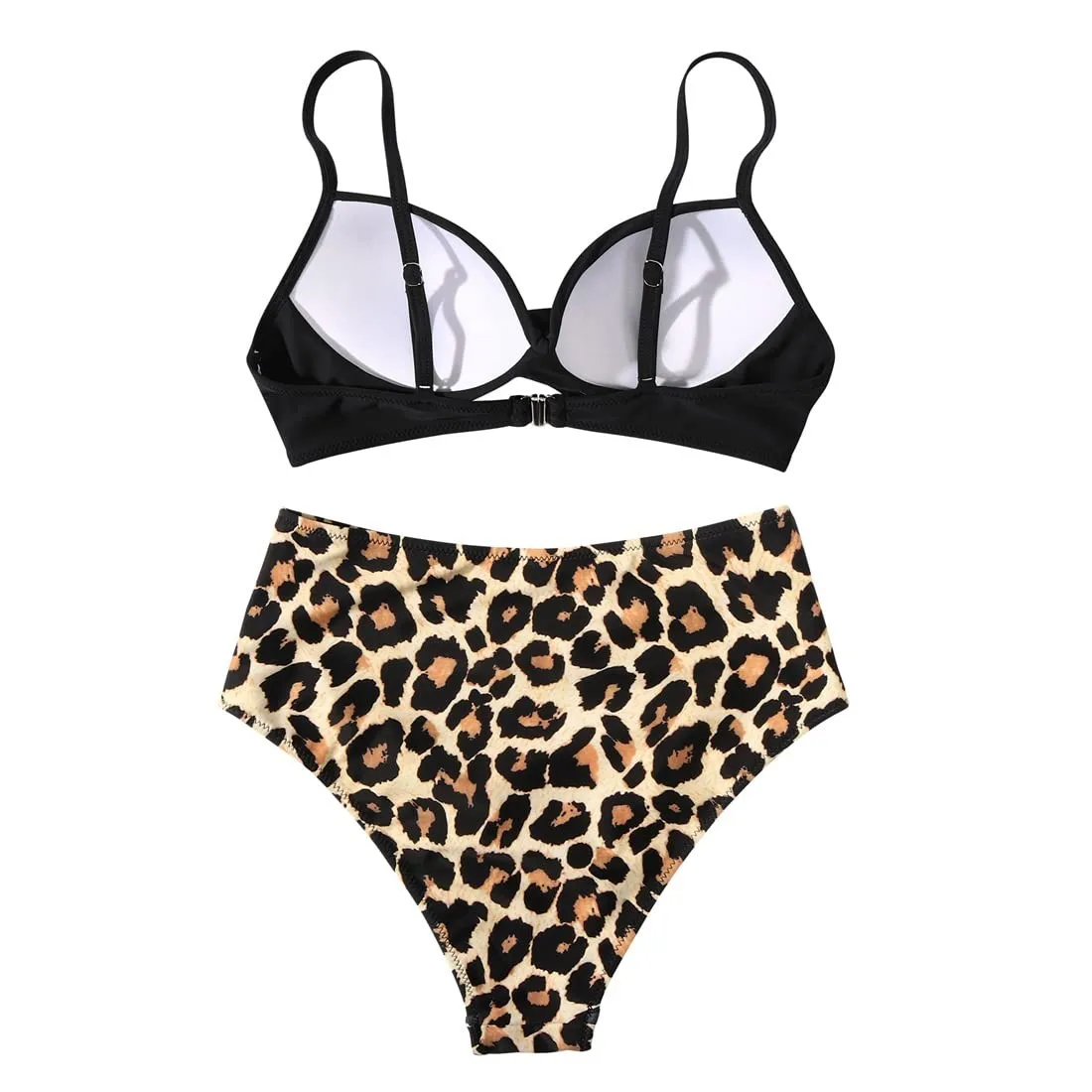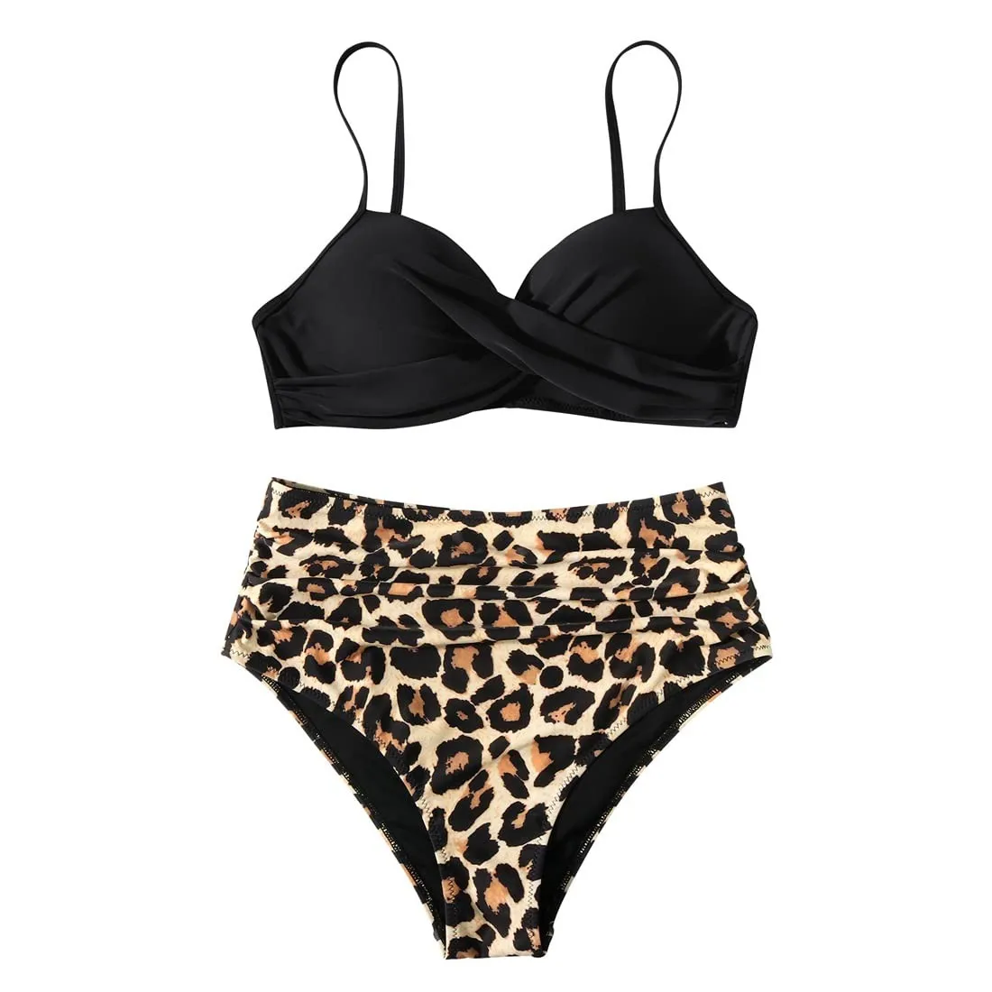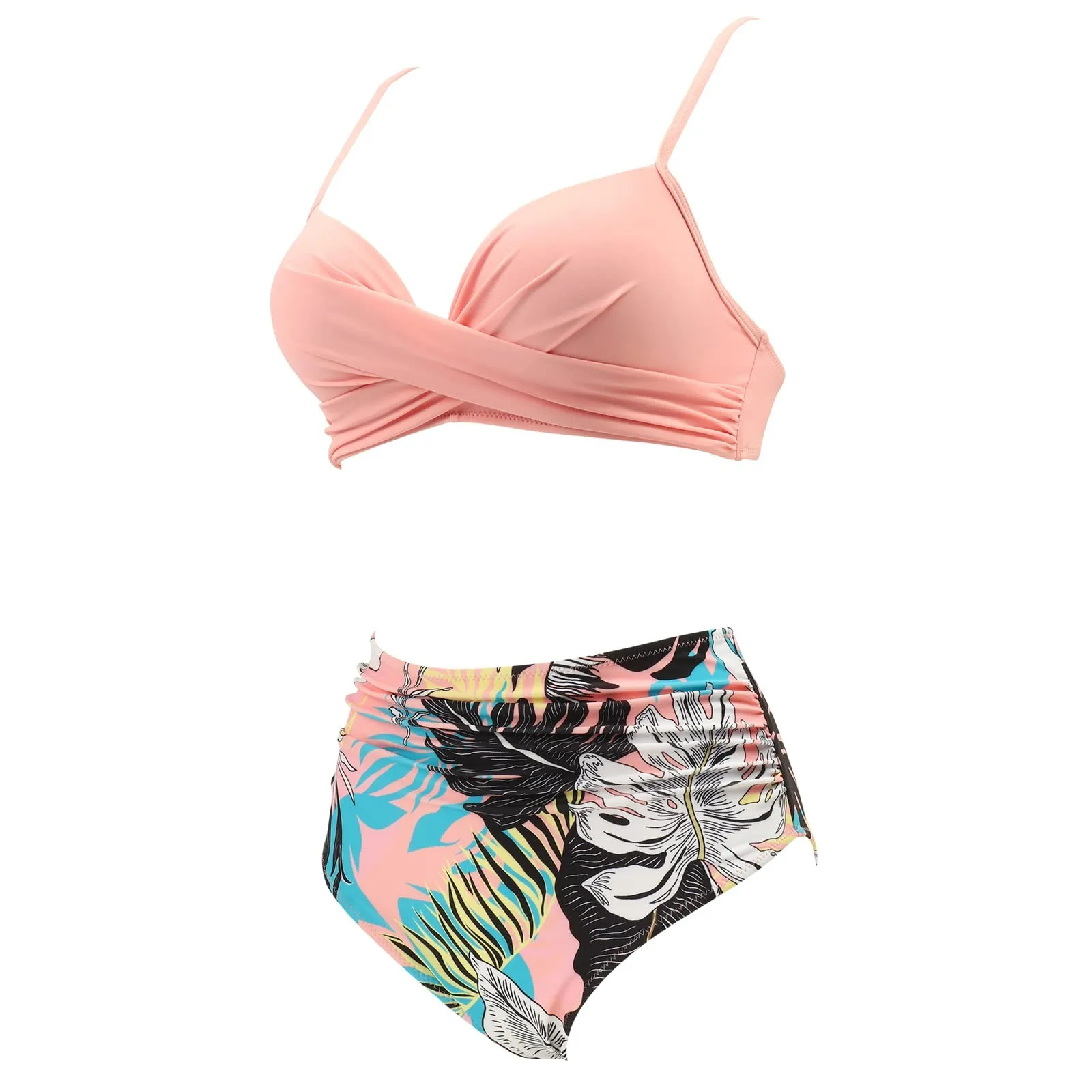 Women’s Spring And Summer Sexy Print Split High Waist Bikini Swimsuit (2 Sets)