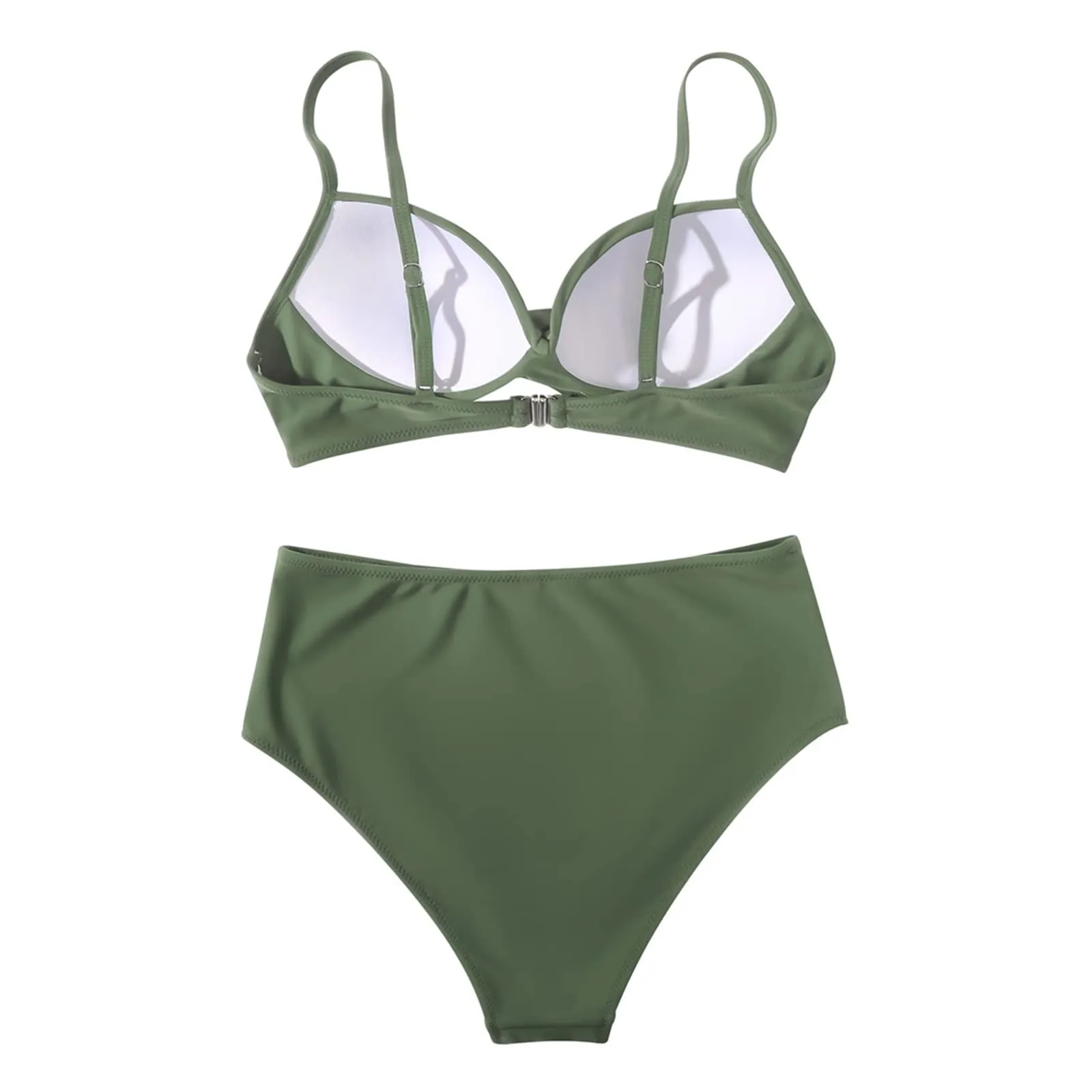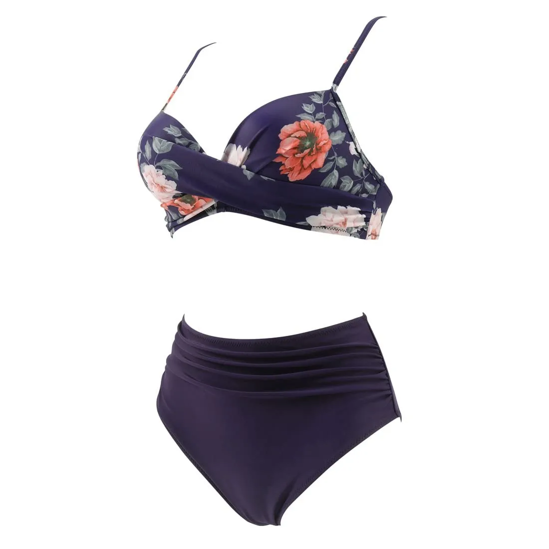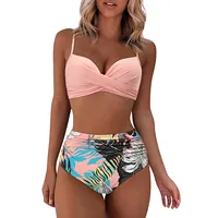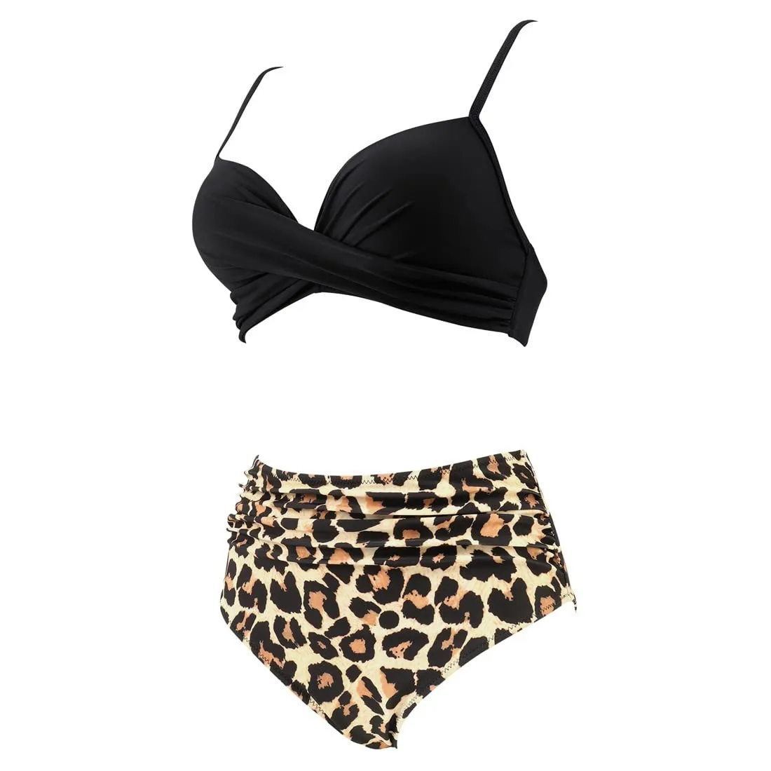 Women’s Spring And Summer Sexy Print Split High Waist Bikini Swimsuit (2 Sets)