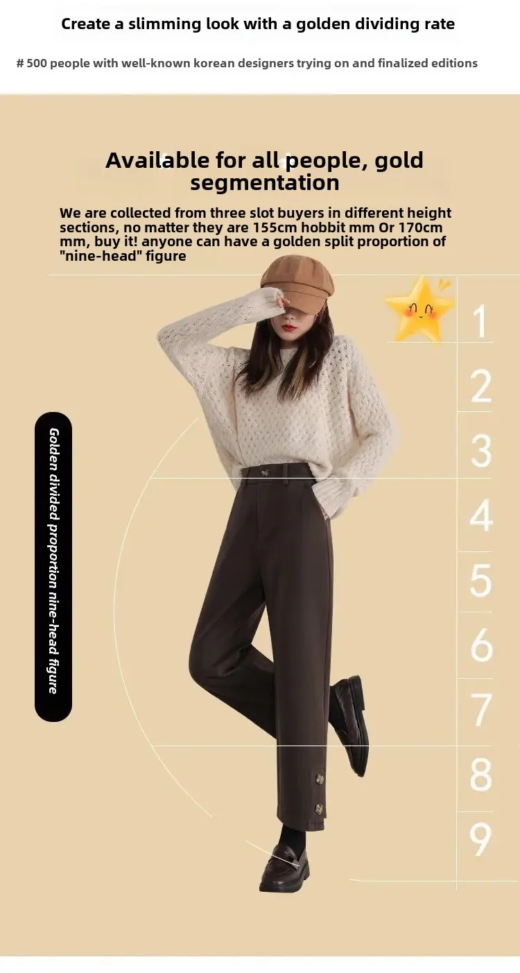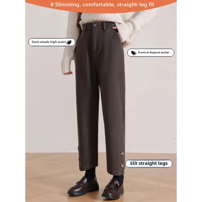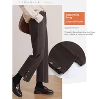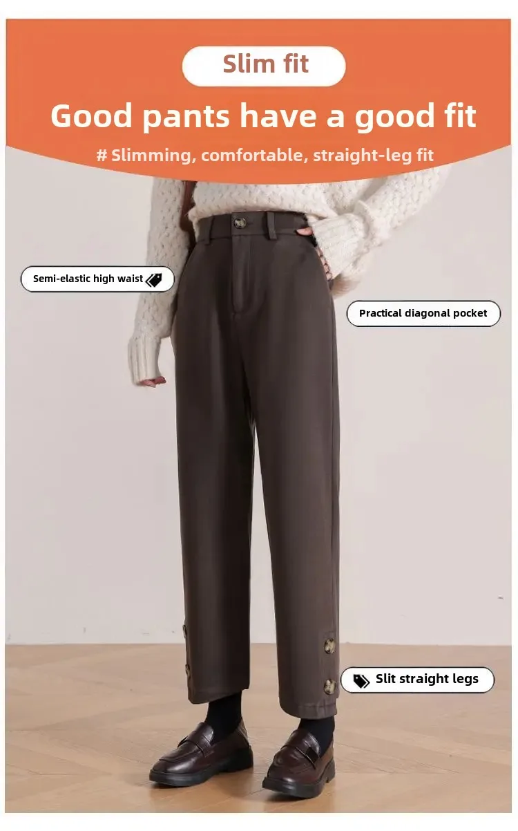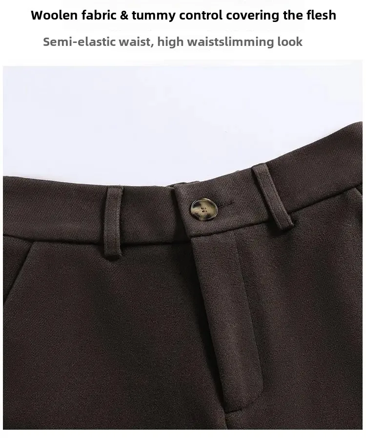 • Trendy Design : The new arrivals for Spring and Autumn 2024 feature pear-shaped figure woolen brown dress pants, offering a trendy small straight-leg wide-leg style.