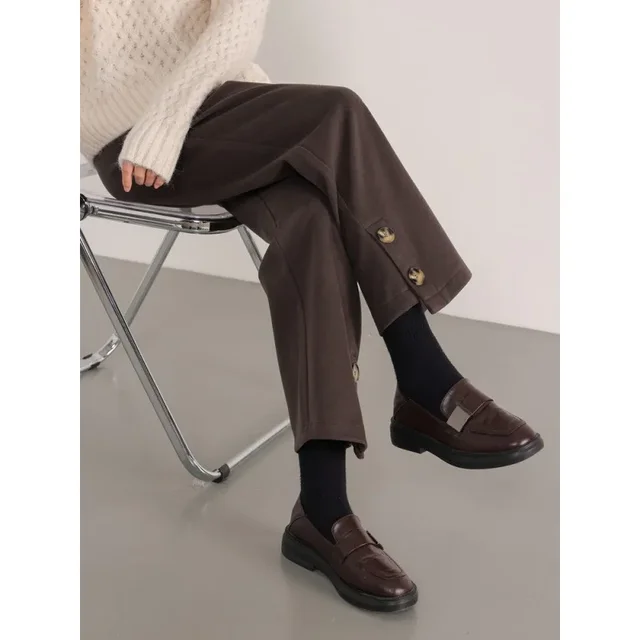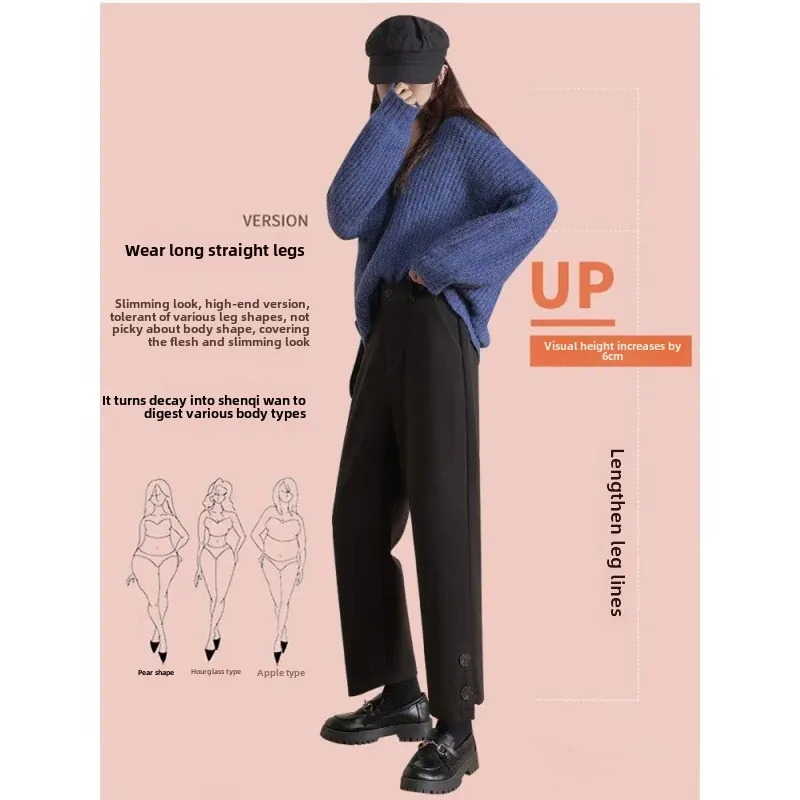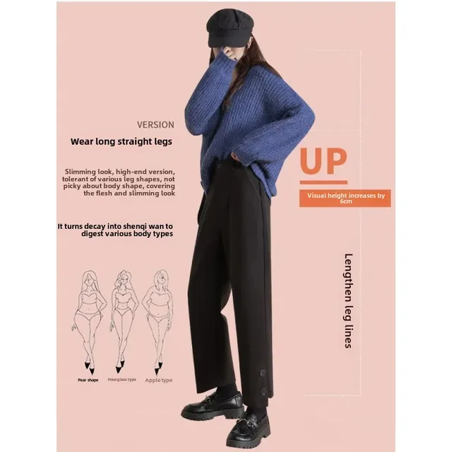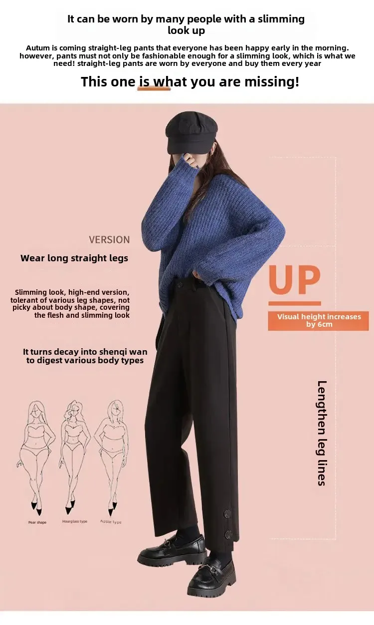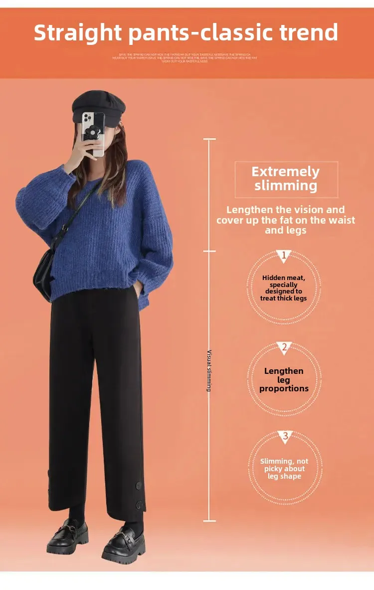 • Trendy Design : The new arrivals for Spring and Autumn 2024 feature pear-shaped figure woolen brown dress pants, offering a trendy small straight-leg wide-leg style.