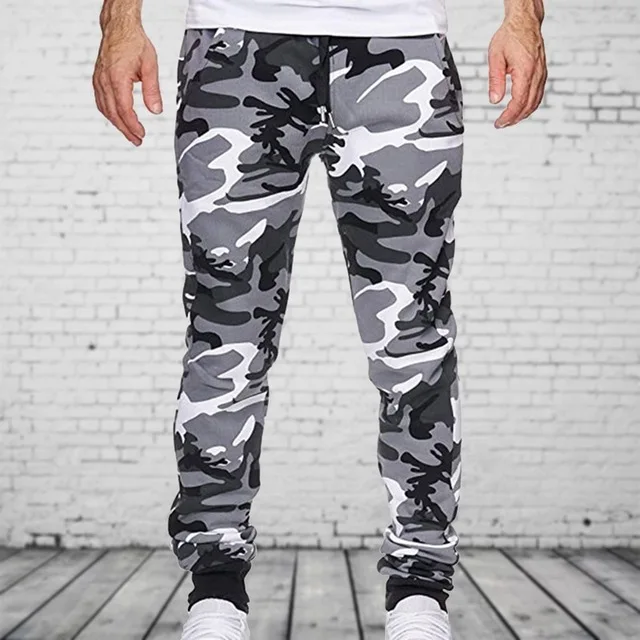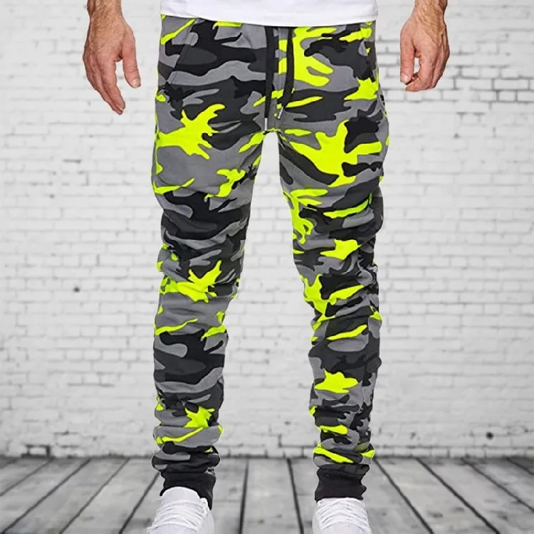 Spring Autumn Camouflage Men's Trousers Slim Fit Casual Pants mid Waist Straight Leg Anti-Wrinkle Polyester Youth Faion