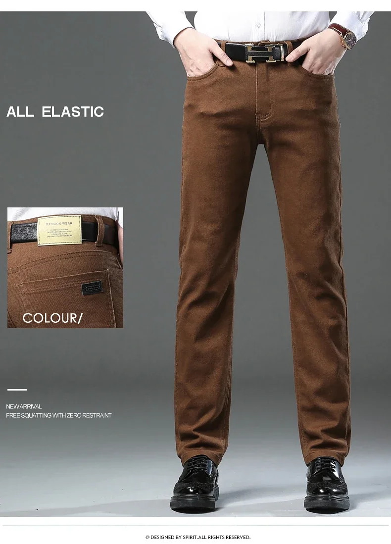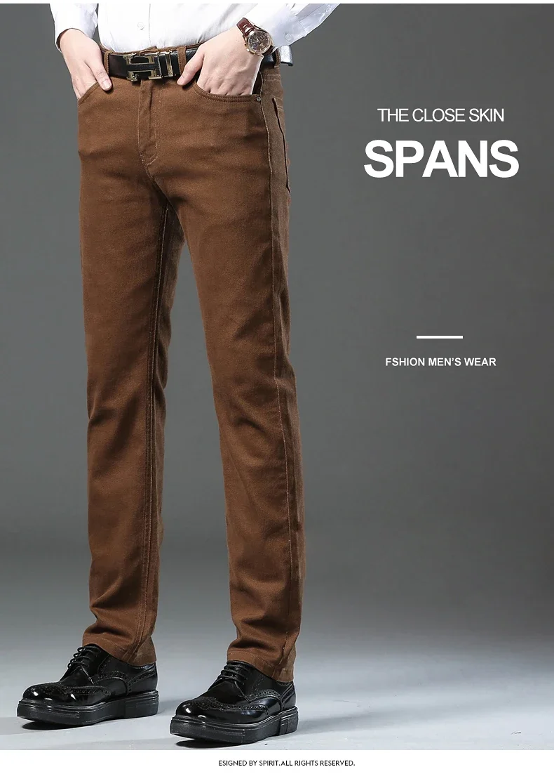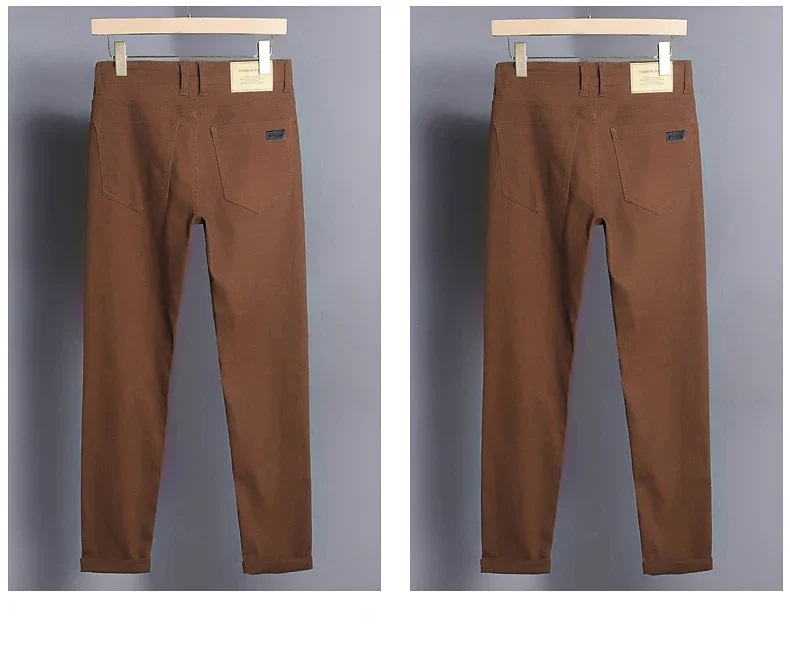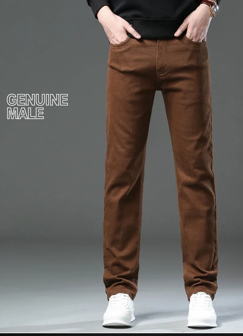 Spring Autumn Fashion Brown Business Casual Stretch Denim Pants Male Brand Trousers Men’s Clothing