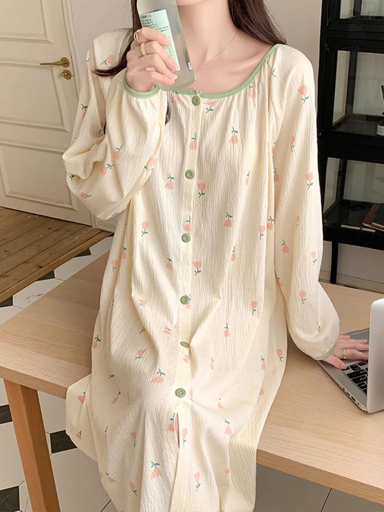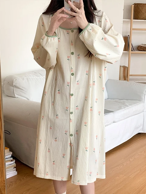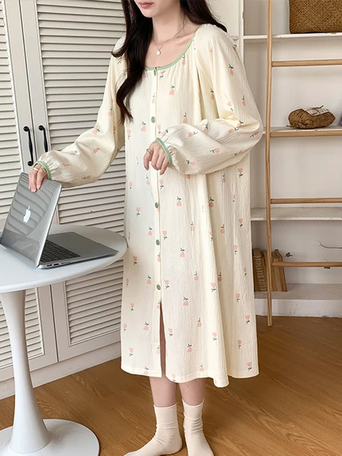Spring Autumn Materni Spwear Long Sve Sweet Floral Print Midi Dr Women’s Nightgown Comfortable