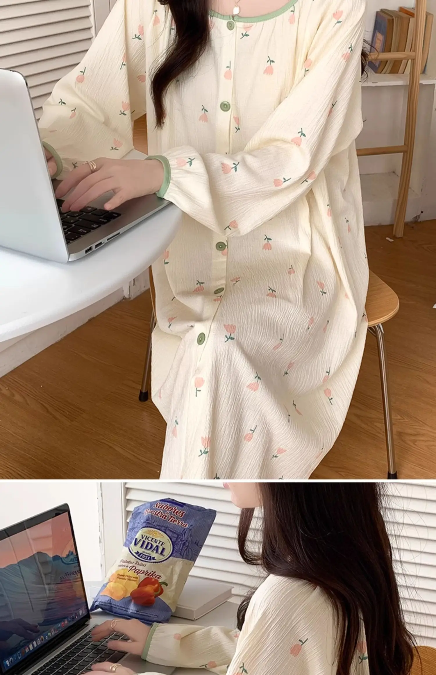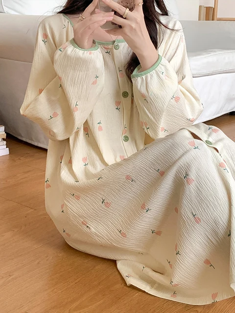 Designed for the spring season, this sleep dress is perfect for warmer nights, keeping you cozy yet stylish.