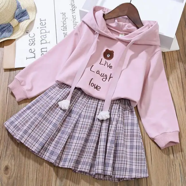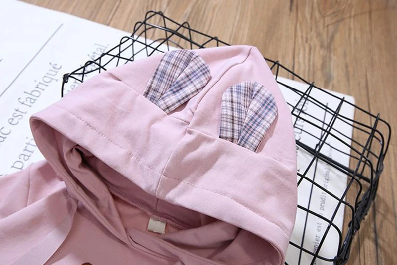 Spring Autumn New Girls Clothing Sets Cute Cartoon Little Bear Hooded Long Sleeve Casual Girls Suits 3-12 Children's Clothing