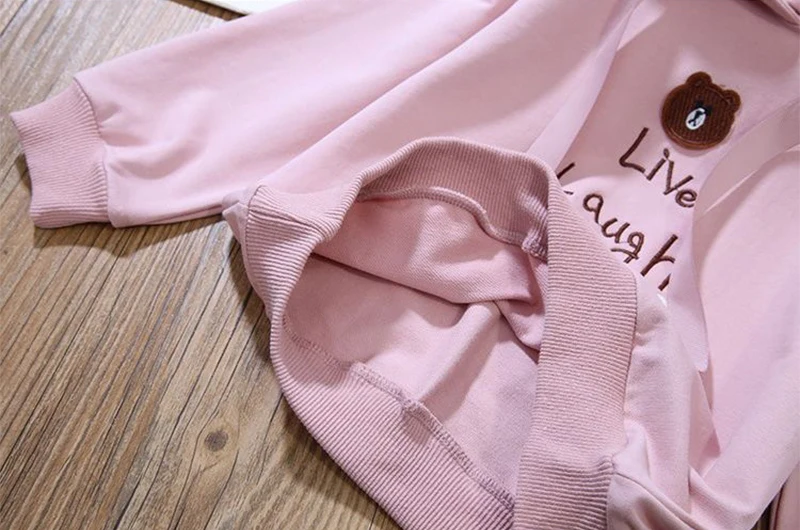 Spring Autumn New Girls Clothing Sets Cute Cartoon Little Bear Hooded Long Sleeve Casual Girls Suits