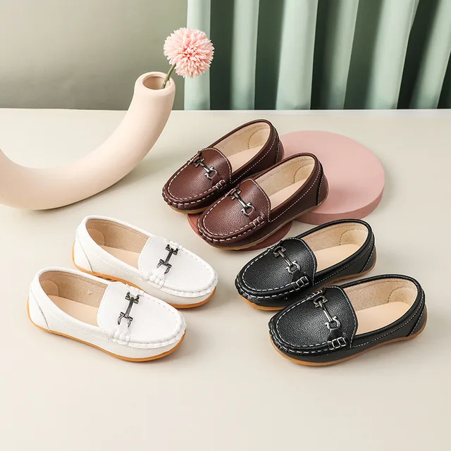 Spring Autumn New Soft Soles with Black White Children’s Leather Shoes Boys Girls Comfortable
