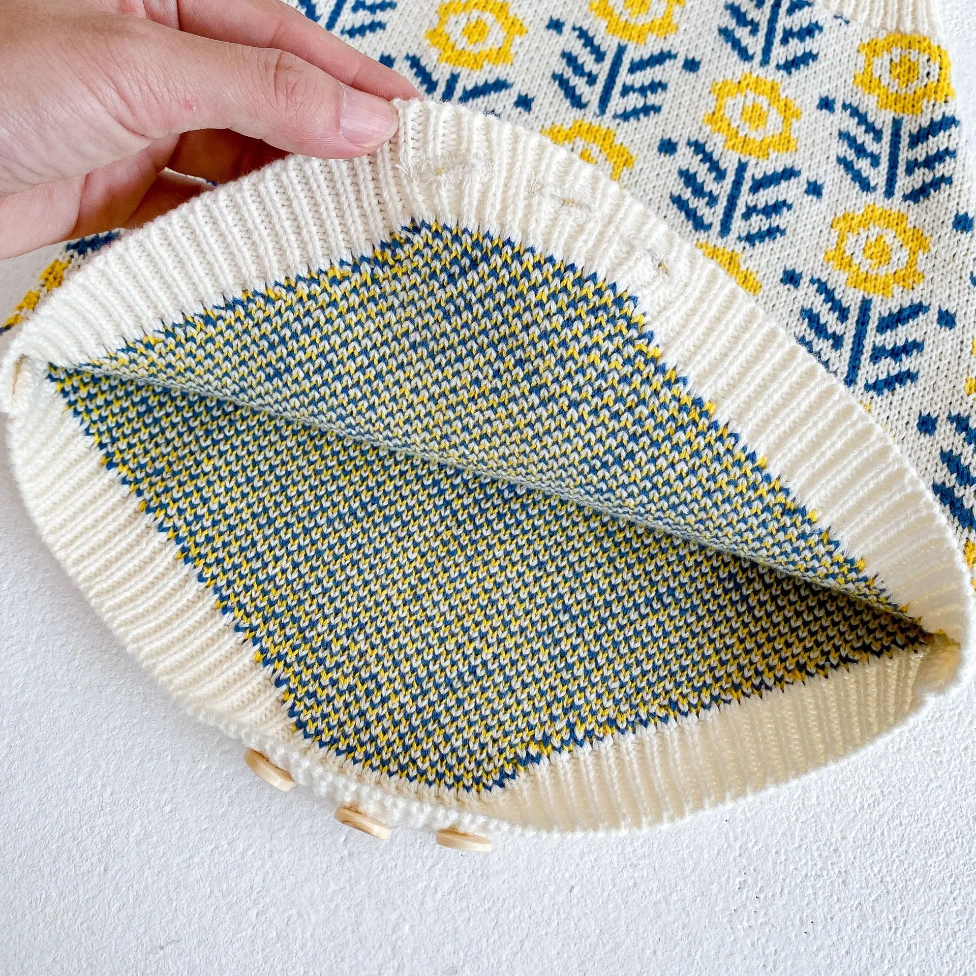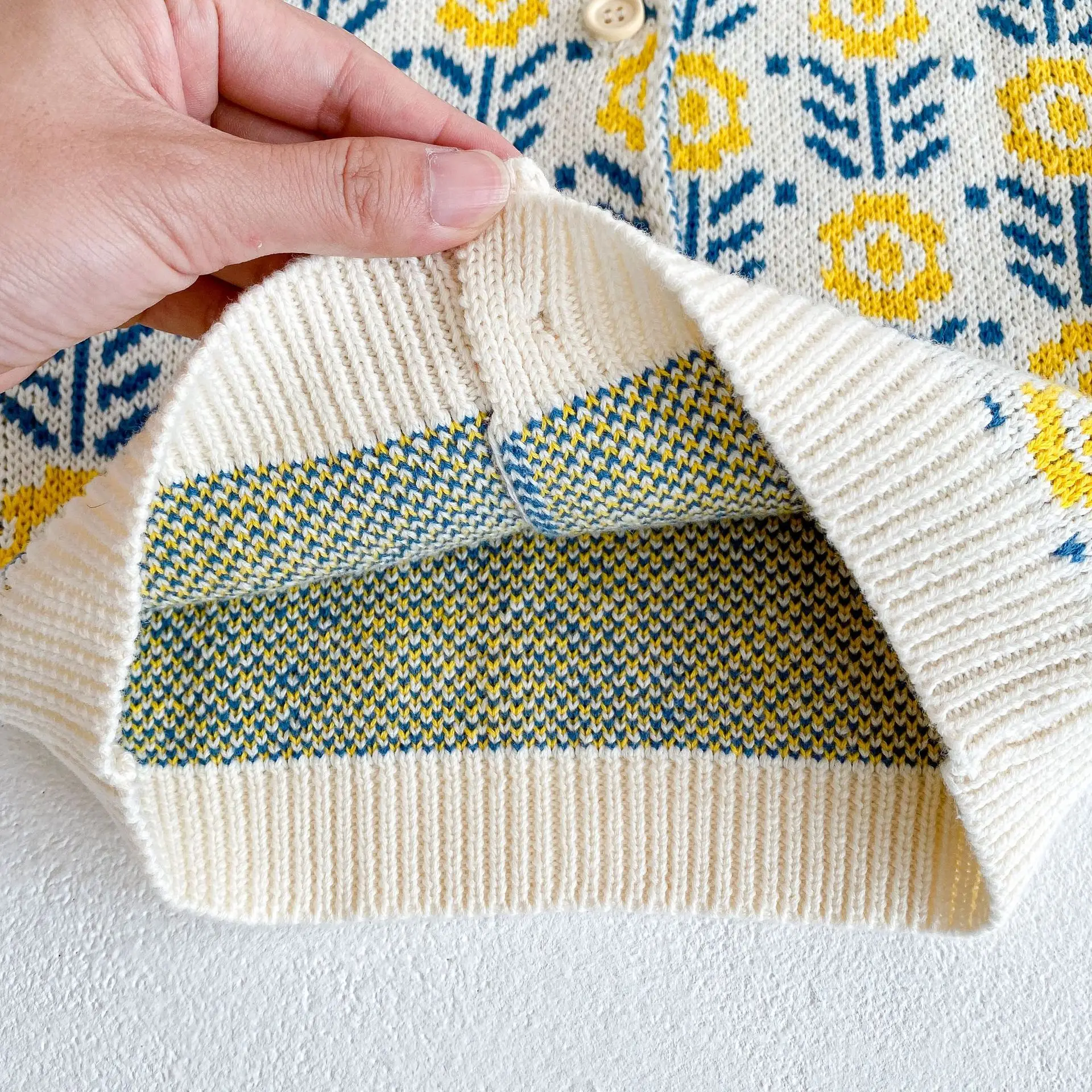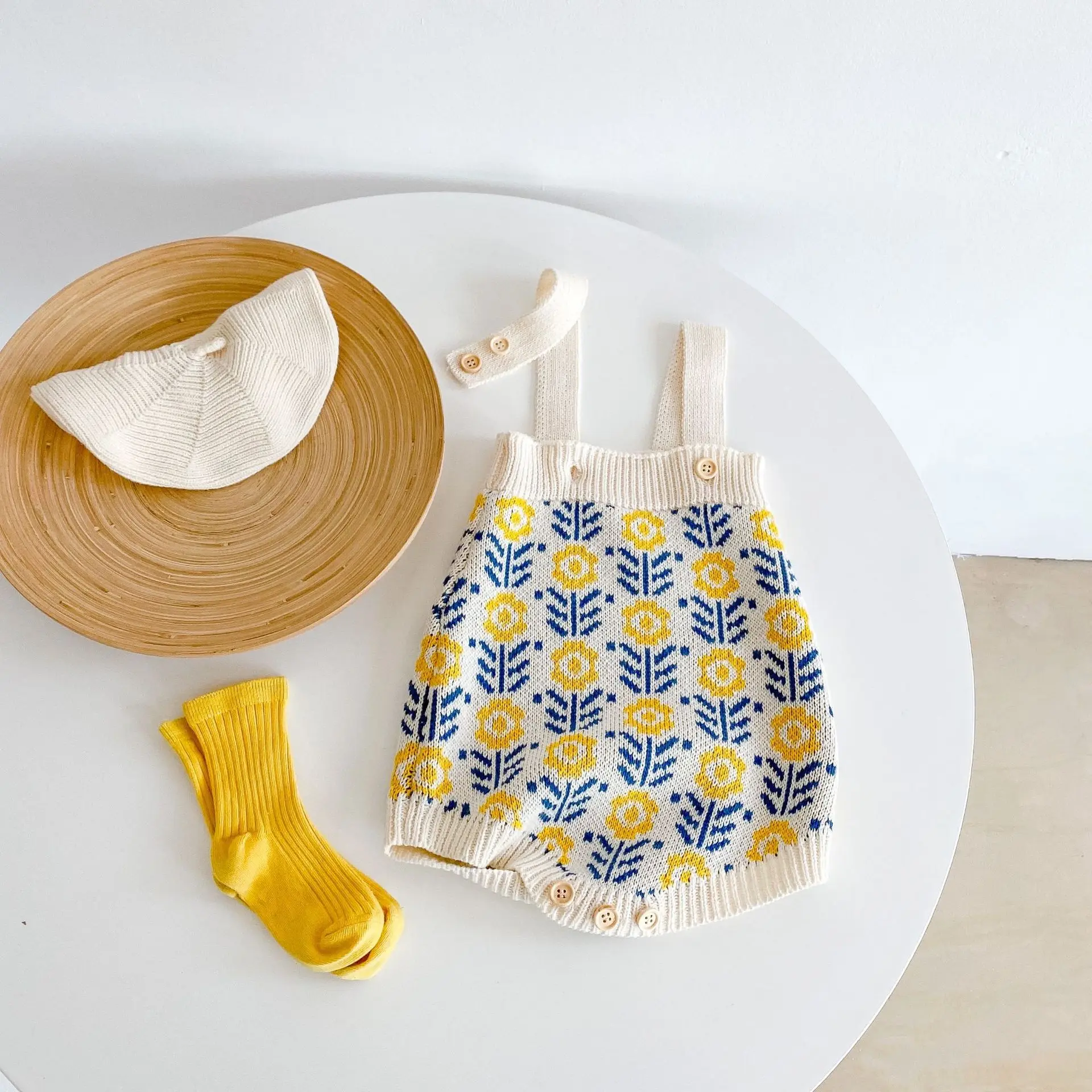 Spring baby suit clothes, baby sweater with flowers, girls’ knitted cardigan+jumpsuit crawling