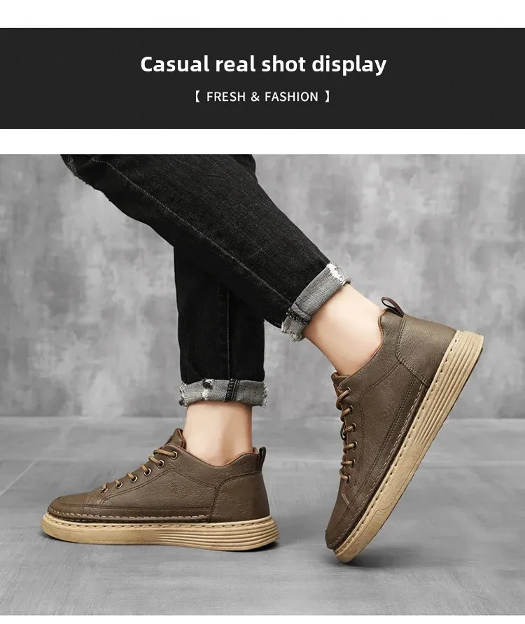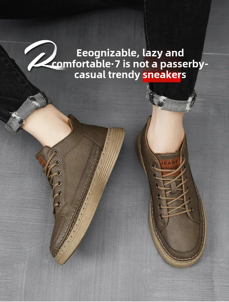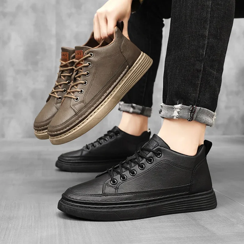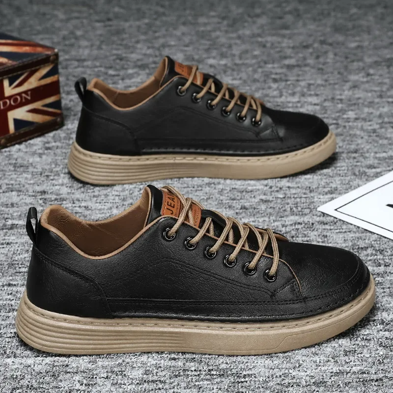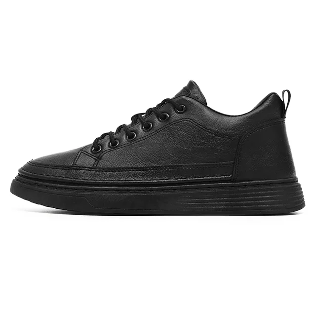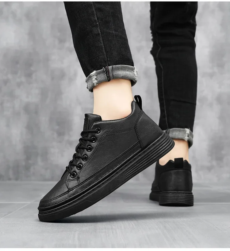 Spring Hot Sale Of The Season Men's Versatile Breathable Casual Sneakers Black Leather Trendy Sports Shoes round Toe EVA Insole