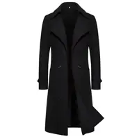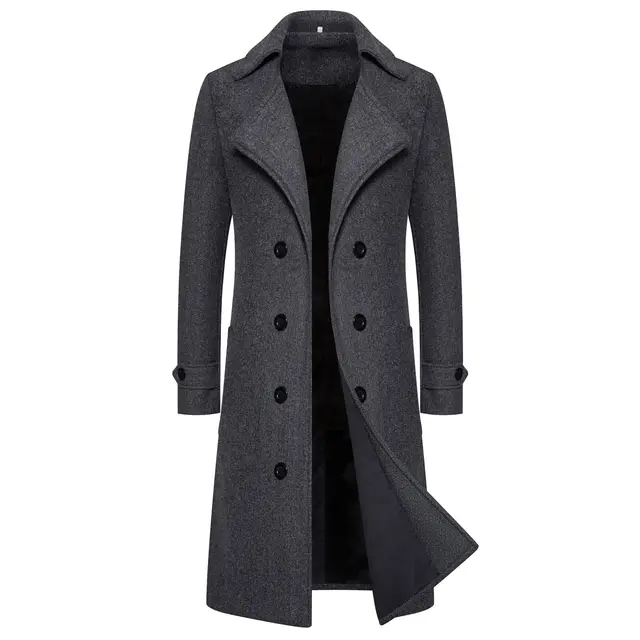 Men's Pocket Single-Breasted Cardigan Suit Coat Autumn Winter Woolen Coat Men Long Sleeve Stand-up Collar Slim Fit Sweater Coat