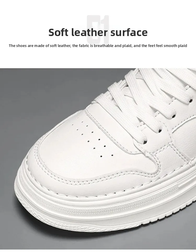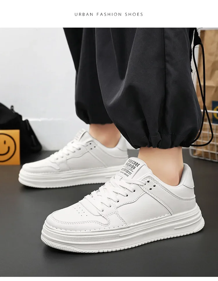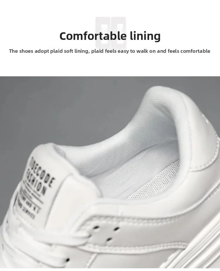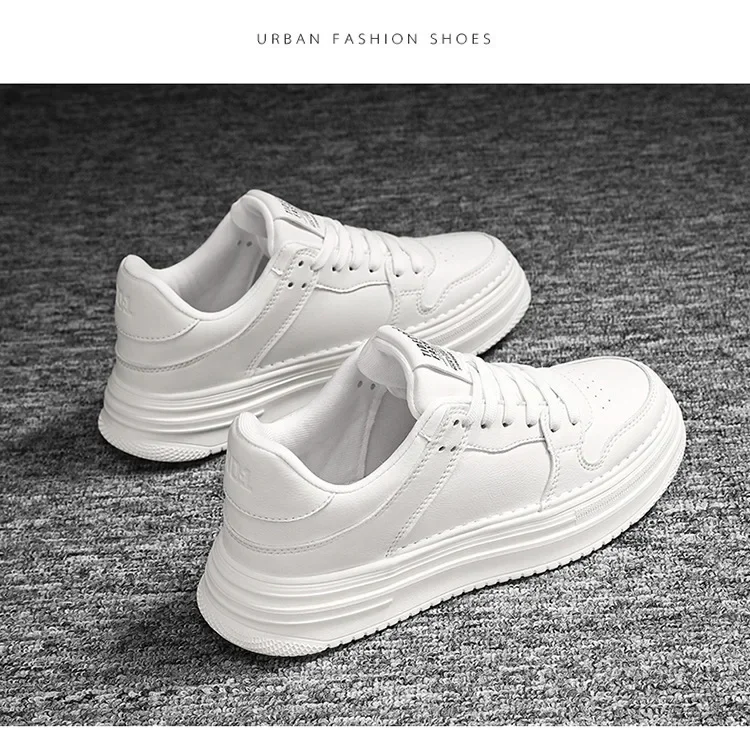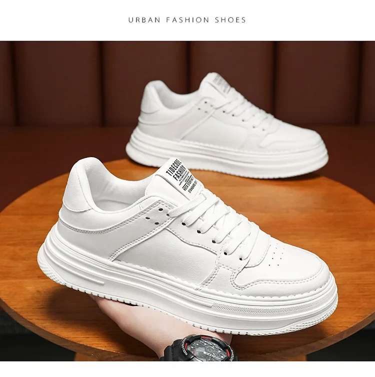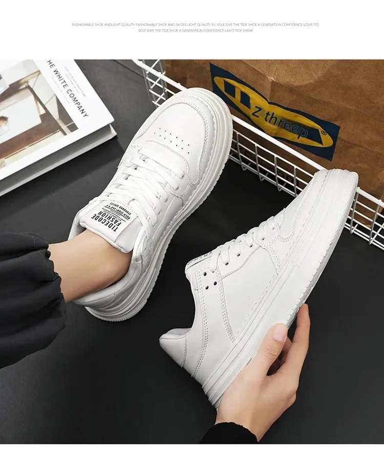 Spring Men’s Breathable Sports Shoes Trendy All-Match Thick Bottom White Sneakers Casual Board