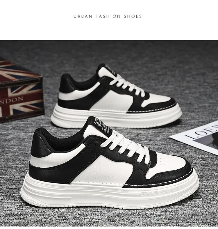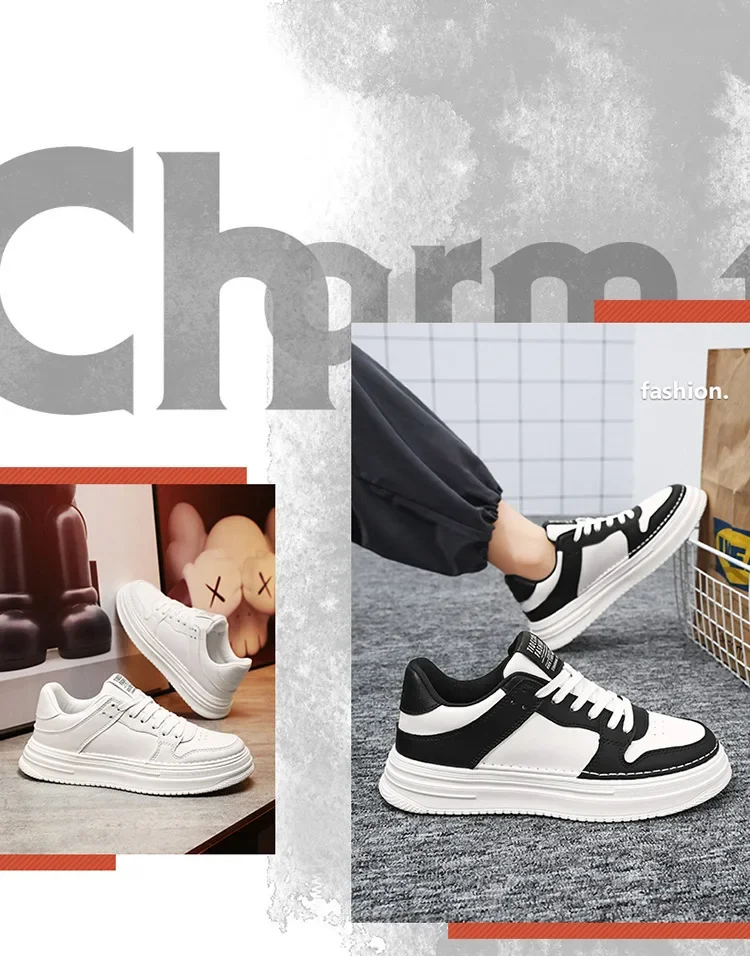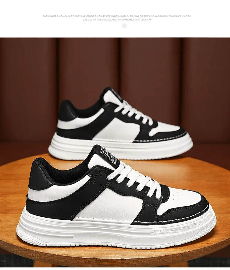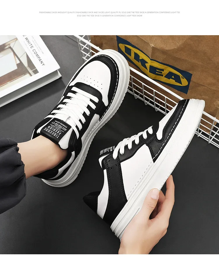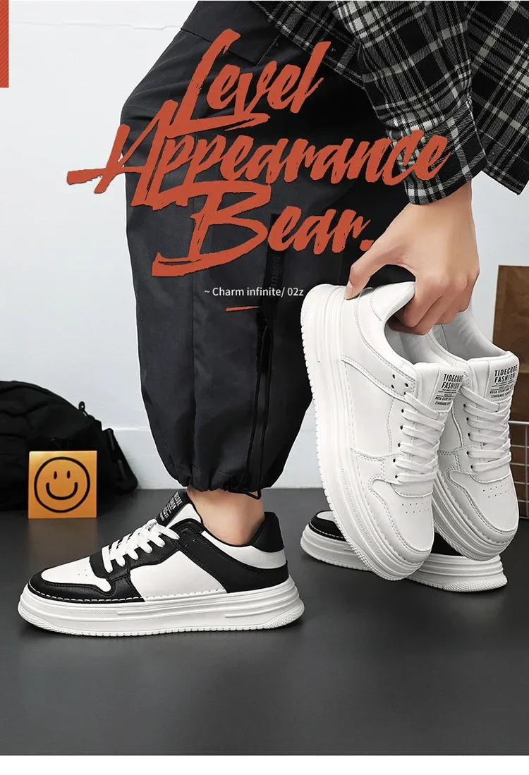 Spring Men’s Breathable Sports Shoes Trendy All-Match Thick Bottom White Sneakers Casual Board